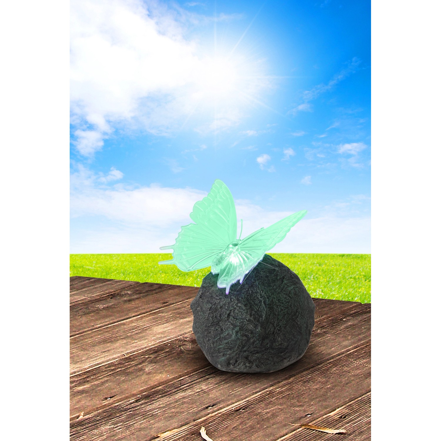 Dekorativní solární svítidlo Motýl je vyrobeno z plastu odolného proti povětrnostním vlivům a je velmi atraktivním i praktickým zdrojem světla. Svítidlo lze umístit libovolně na zahradě, na terase nebo před domovními dveřmi.