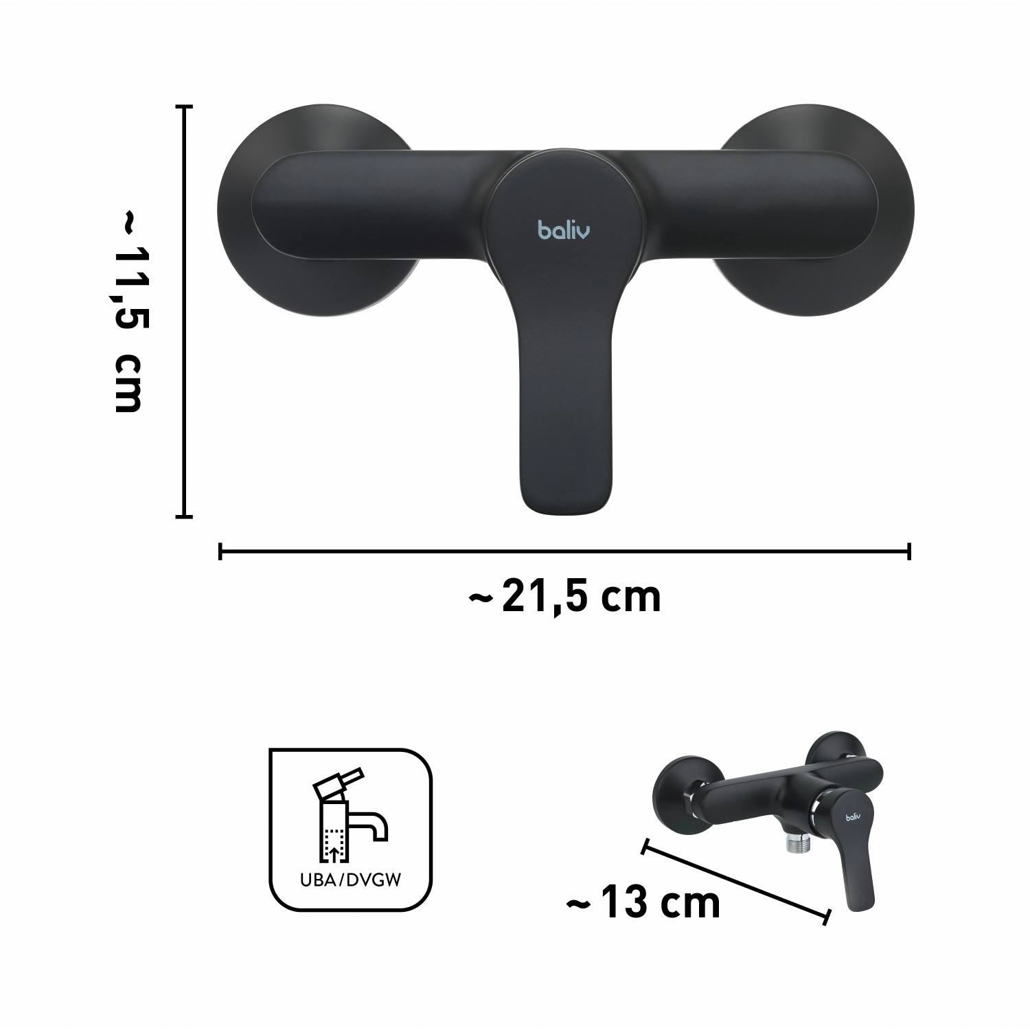 Baliv jednopáková sprchová baterie v černé barvě přináší moderní eleganci do Vaší koupelny. Díky ovládání jednou rukou lze snadno regulovat průtokové množství a teplotu vody.