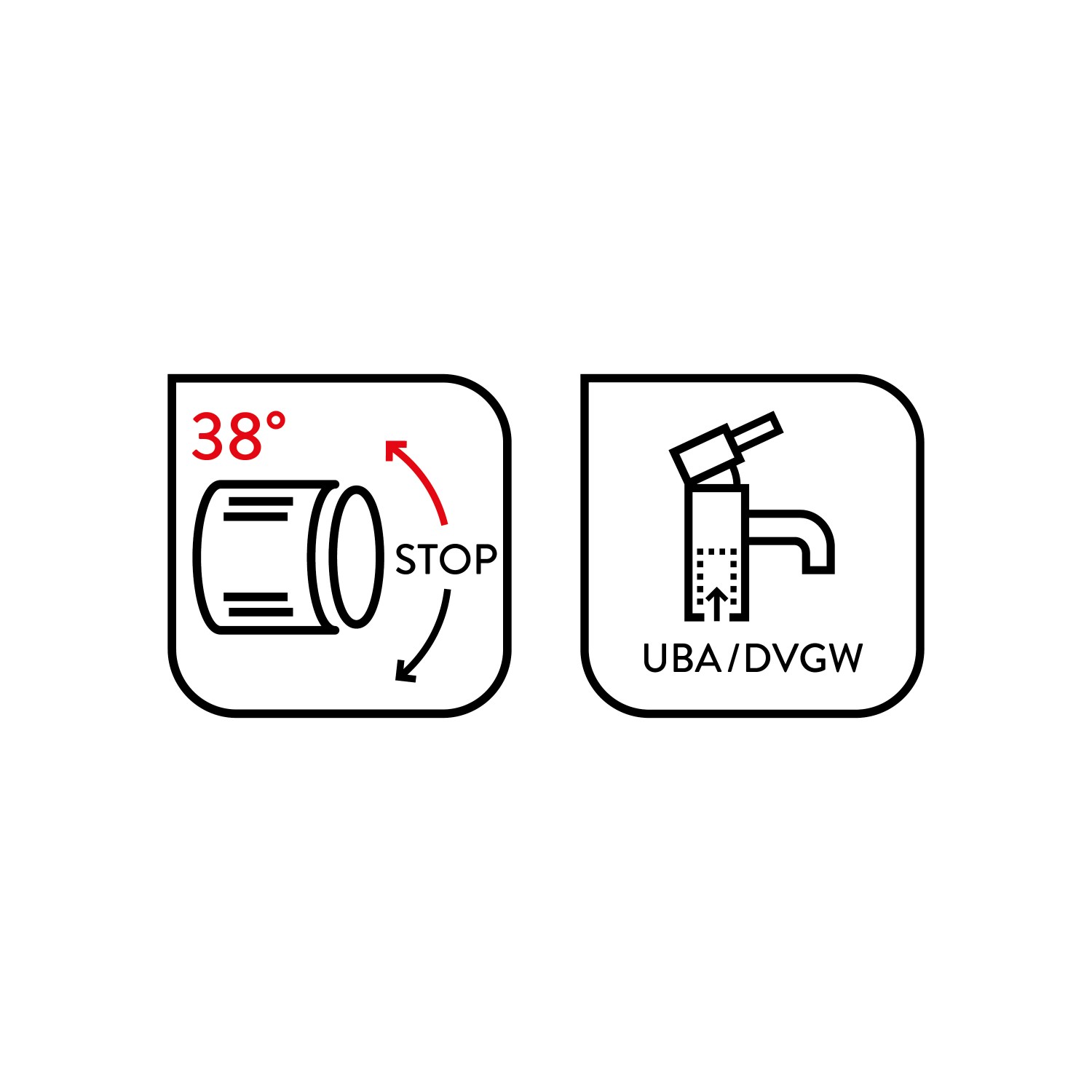 Termostatická sprchová baterie nabízí díky přednastavitelné teplotě možnost úspory vody a energie. Tento komfort je ještě doplněn ochranou proti opaření při +38 °C. Baterie není citlivá na kolísání tlaku a je osazena osvědčenou značkovou kartuší a vybavena připojovacím materiálem.