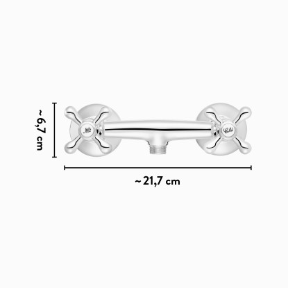 S baliv sprchovou vodovodní baterií DU-5040 vnesete do koupelny venkovský styl. Baterie v retro designu okamžitě zaujme křížovými rukojeťmi a nadchne celou rodinu. Studenou a teplou vodu můžete jednoduše regulovat zvlášť. Rukojeti sladěné s vaším designem jsou opatřeny nostalgickým kudrlinkovým písmem.