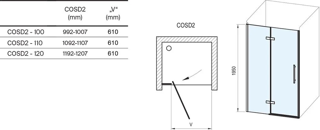 Sprchové dveře COSD1 jsou jednodílné a tím nabízejí komfortní široký vstup. Neváhejte pohodlně vstoupit a hýčkat se přívalem teplé vody.