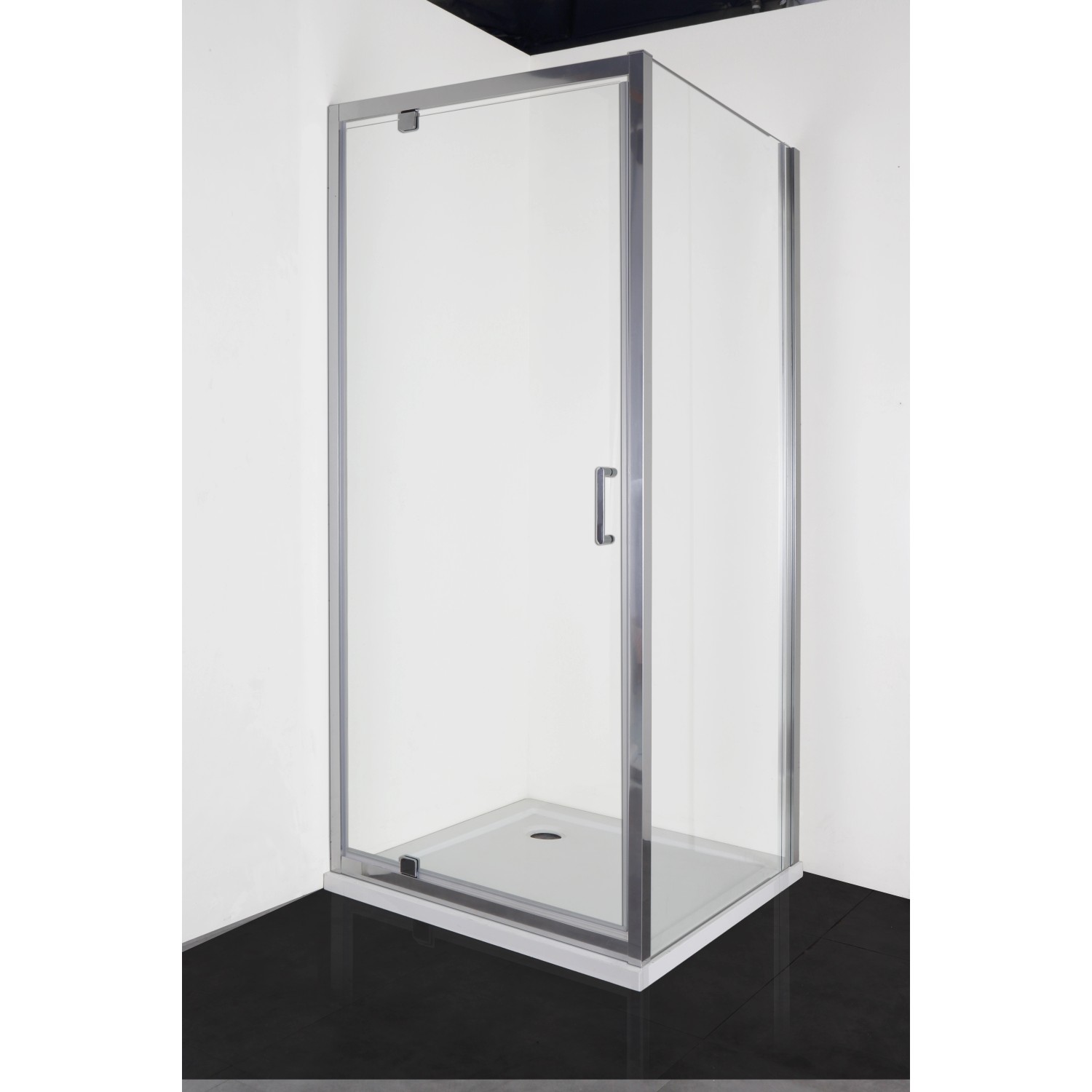 Dveře jsou opatřeny kovovými madly ve vzhledu chromu. Nástěnné profily lze nastavit v rozsahu 4 cm, tím je při montáži zajištěna větší flexibilita a můžete tak jednoduše vyrovnat šikmé stěny.