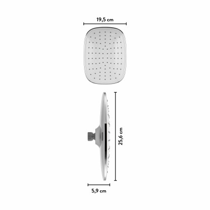 Protože toužíte po koupelně, která dlouho vydrží, jsou všechny součásti vyrobeny z kovu. Díky vysoké kvalitě použitého materiálu je sprchová hlavice robustní a má dlouhou životnost. Hlavová sprcha s různými typy proudu vody zaručuje skvělý zážitek ze sprchování. Pro minimální čas strávený čištěním je sprchová hlavice opatřena praktickými nopky proti usazování vodního kamene. Ty poskytují dobrou ochranu proti obtěžujícím usazeninám. Pro příjemný požitek ze sprchování je sprcha dlouhá 25,6 cm a široká 19,5 cm. Díky normované přípojce 18,6 mm (G1/2) se sprchová hlavice bez problému hodí k montáži na všechny standardní stoupací trubky a sprchová výtoková ramena.