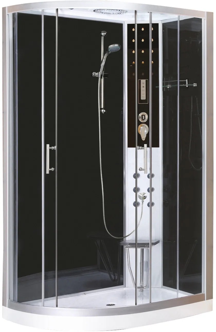 Sprchový box Sanotechnik Vario je vybaven hlavní sprchou, ruční sprchou, jednopákovou baterií s přepínačem, 6 masážními tryskami, dotykovou obrazovkou s rádiem, reproduktory, ventilátorem, LED osvětlením a sklopným sedákem.