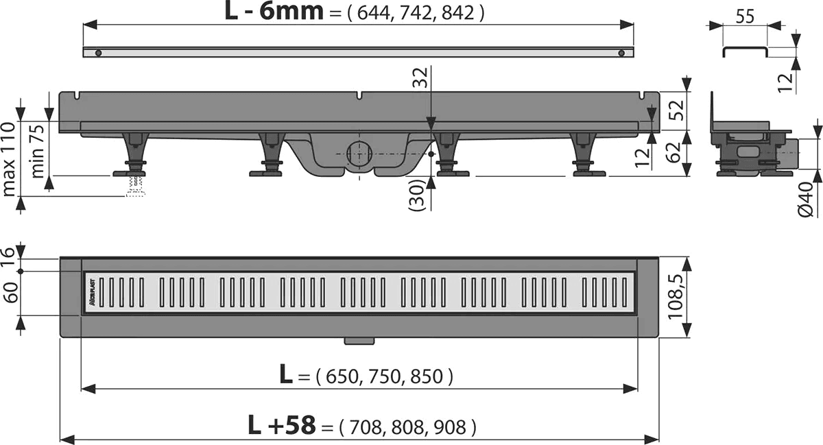 Podlahový žlab z vysoce odolného plastu, který odolá mrazu i chemii. Stavební výška od 62 mm. Výškově nastavitelné plastové kotvící nohy 0-35 mm umožňující rychlou a komfortní instalaci včetně přesného nastavení roviny zápachová uzávěra (vlastní řešení chráněné užitným vzorem) zaručuje ochranu proti zápachu z kanalizace i po vyschnutí vody v sifonu. Mechanicky čistitelný sifon až po odpadní trubku. Rošt je součástí balení. Samolepící páska pro kvalitní hydroizolaci. Materiál: polypropylen plněný mastkem odolný proti mechanickému, chemickému a tepelnému poškození.