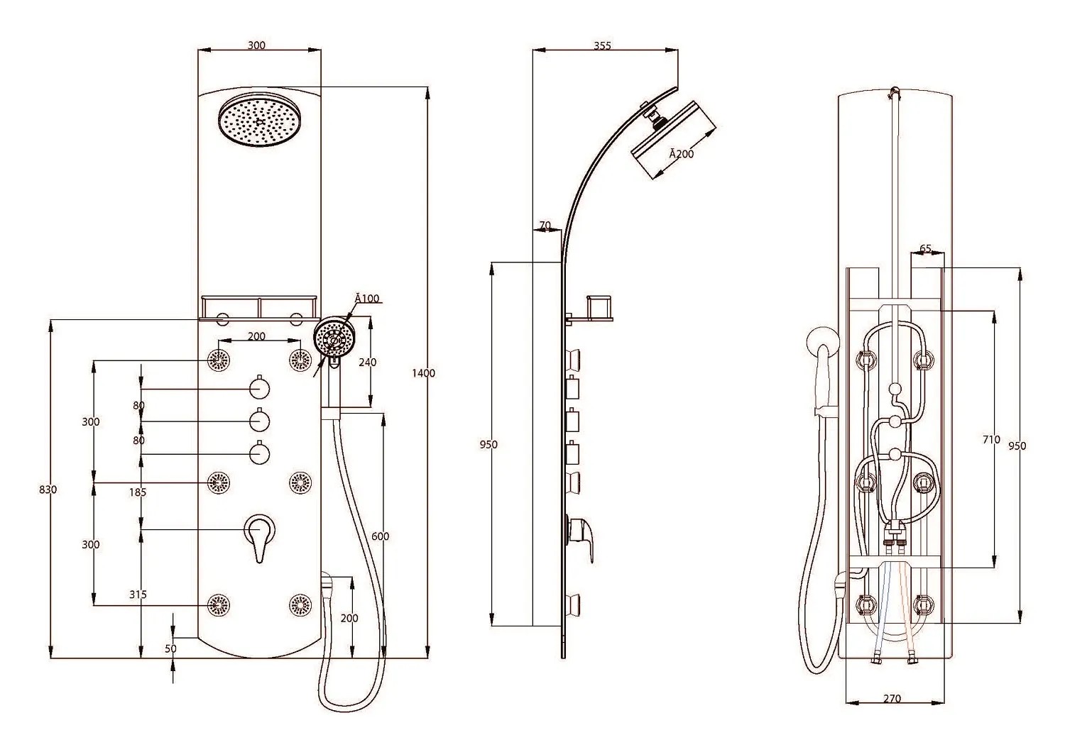Rozměry (š x v x h): 297 mm x 1400 mm x 355 mm