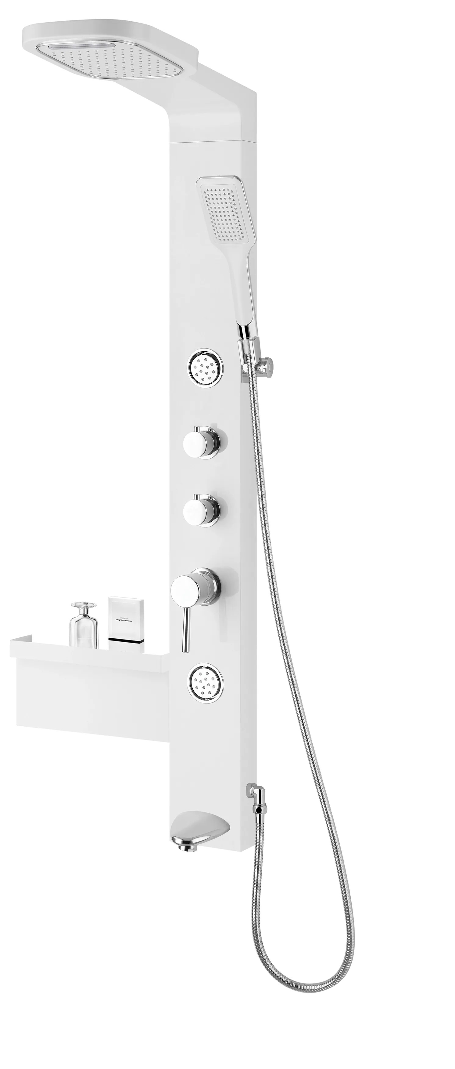 Sprchový sloup zahrnuje jednopákovou baterii, přepínač, základní těleso, masážní trysky, sprchovou hadici a ruční sprchu, hlavní hlavovou sprchu a držák sprchy.
