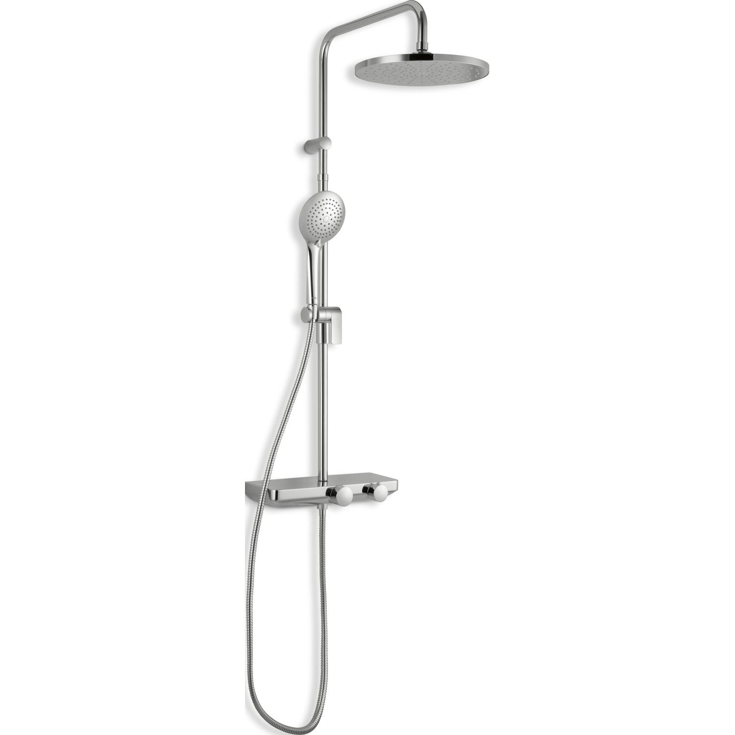 Hlavová sprcha s ruční sprchou se 3 typy proudy vody, hadice, tyč a termostatická sprchová baterie.