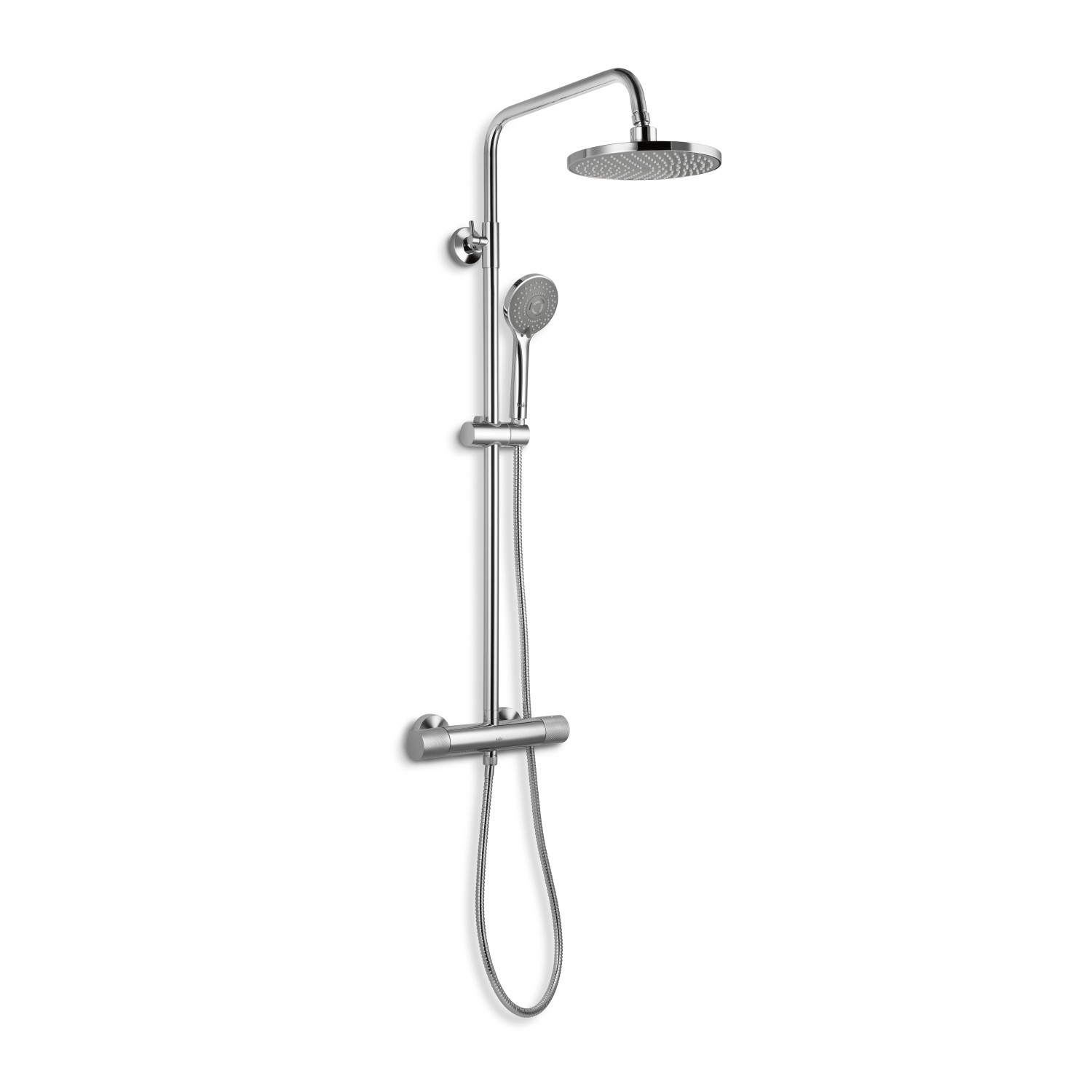 Hlavová sprcha s ruční sprchou se 3 typy proudy vody, hadice, tyč a termostatická sprchová baterie.