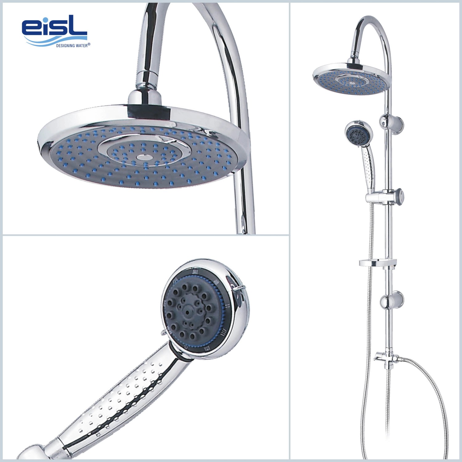 Eisl sada hlavové sprchy Sommerregen upoutá díky elegantnímu designu pozornost v každé koupelně - pro osvěžující sprchování a blahodárné uvolnění těla i mysli. Komfortní sprchový sloup Sommerregen s hlavovou a ruční sprchou slibuje ryzí požitek ze sprchování. Začněte den osvěžením pod velkoformátovou, plochou hlavovou sprchou nebo využijte ruční sprchu k večerní relaxaci. Pomocí integrovaného přepínače můžete pohodlně přepínat mezi hlavovou a ruční sprchou - vždy podle typu sprchy.