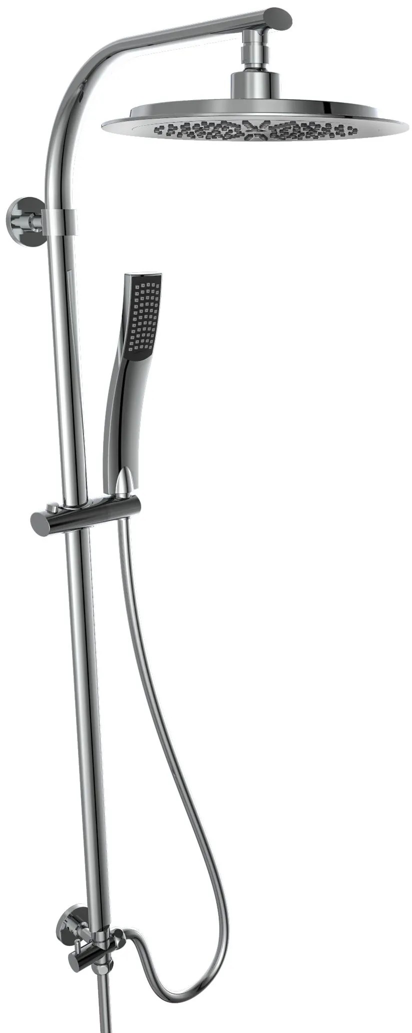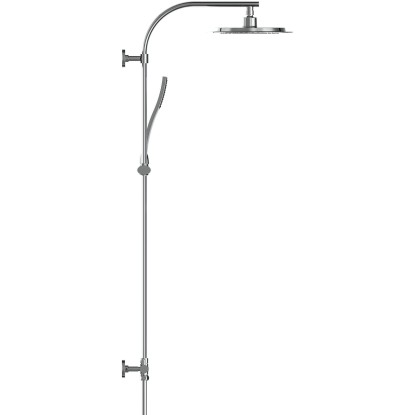 Moderní sprchový sloup má povrch z kvalitní pochromované oceli, horní atraktivní sprchu a ruční sprchu.