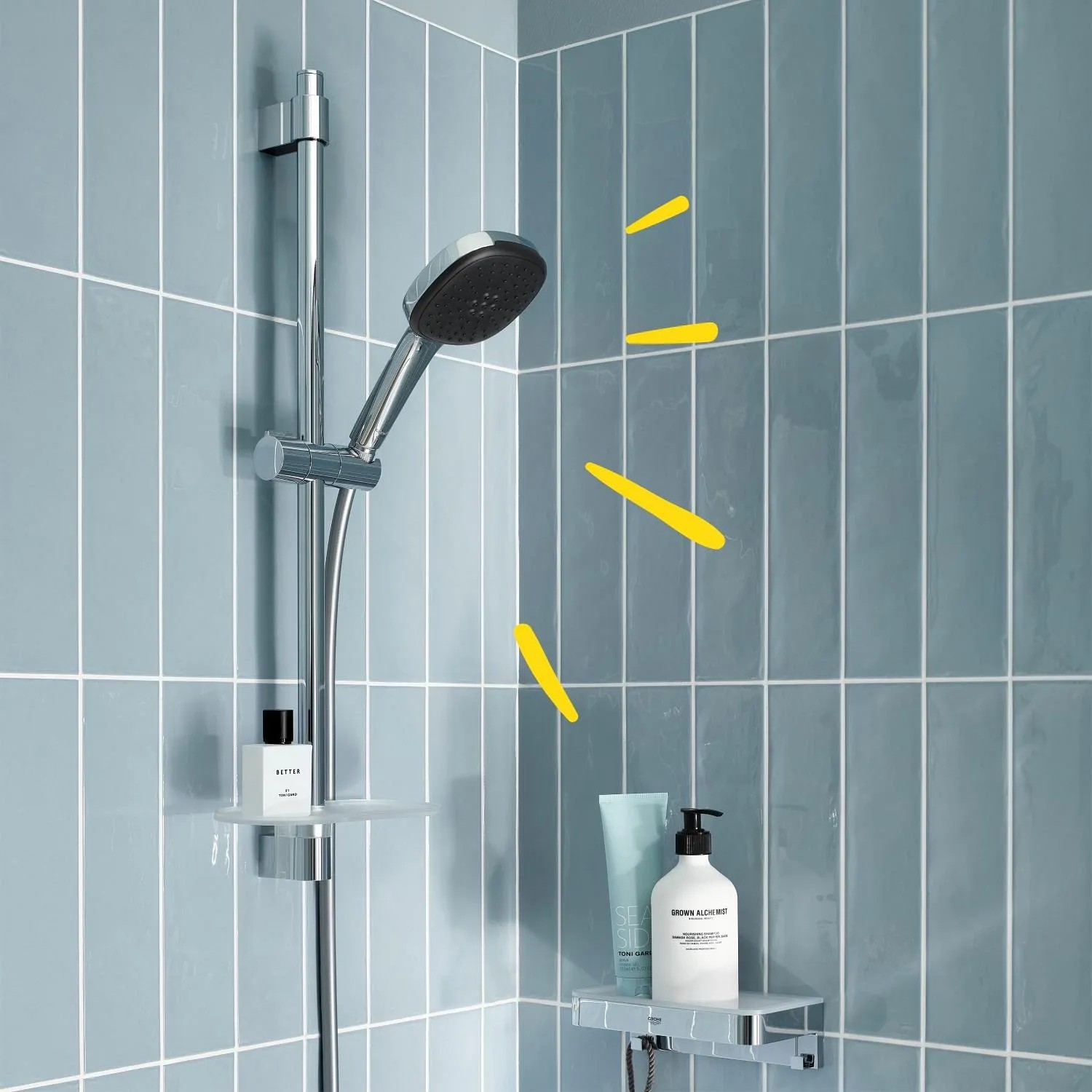 Díky oslnivé, ale odolné povrchové úpravě GROHE Long-Life bude tato sada vypadat bezchybně po dlouhá léta. Není třeba žádné nářadí - díky slibu QUICKFIX je instalace překvapivě snadná! Univerzální montážní systém je vhodný pro všechny standardní sprchové hadice - stačí hadici našroubovat. Matice GROHE ProGrip hadice mají vroubkovaný povrch pro optimální uchopení a snadné utahování. Držák lze přišroubovat (šrouby a hmoždinky jsou součástí dodávky) nebo ještě pohodlněji přilepit! Potřebujete pouze 2 x sadu GROHE QUICKGLUE Set S (41247000, prodává se samostatně). Přídržná síla je max. 20 kg! Pokud potřebujete další pokyny, podívejte se na naše Rychlé video nebo se podívejte na Stručného průvodce.