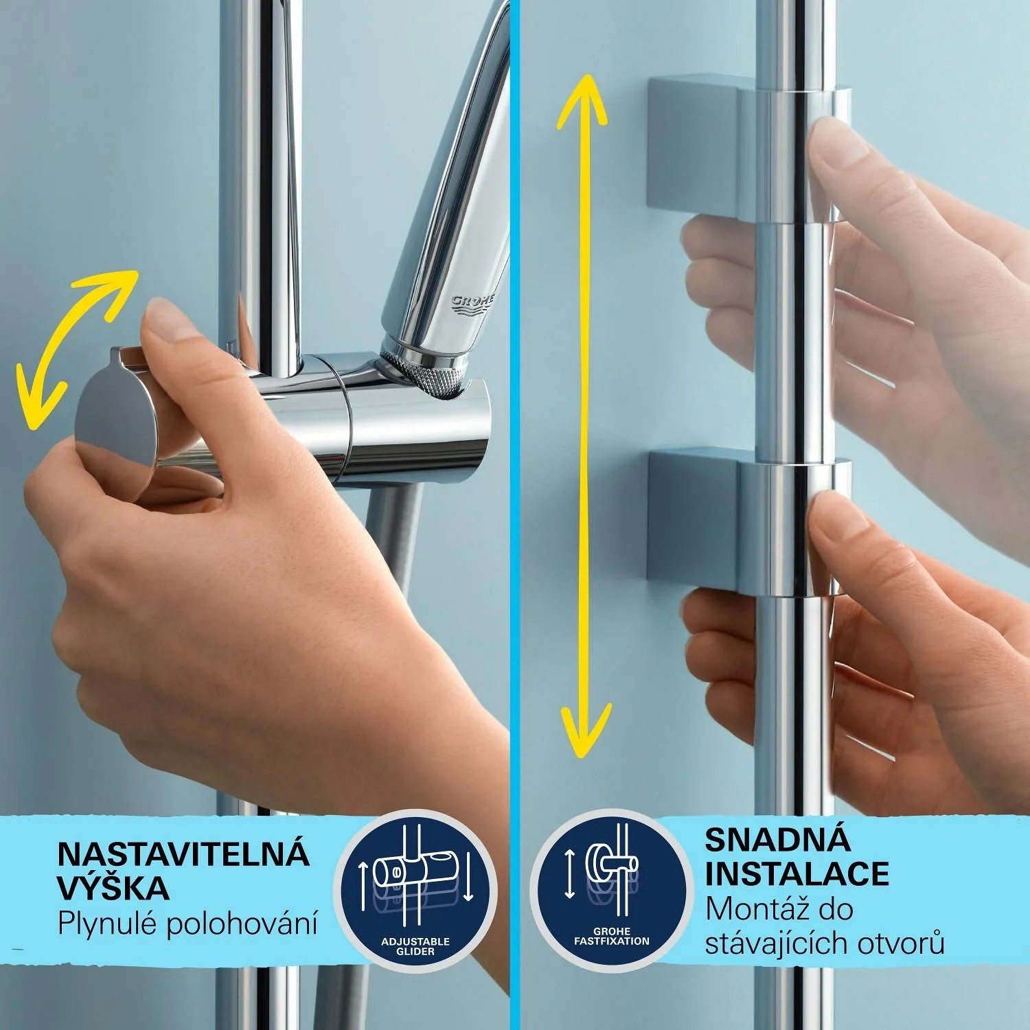 - GROHE FastFixation (nastavitelný horní držák pro stávající otvory)