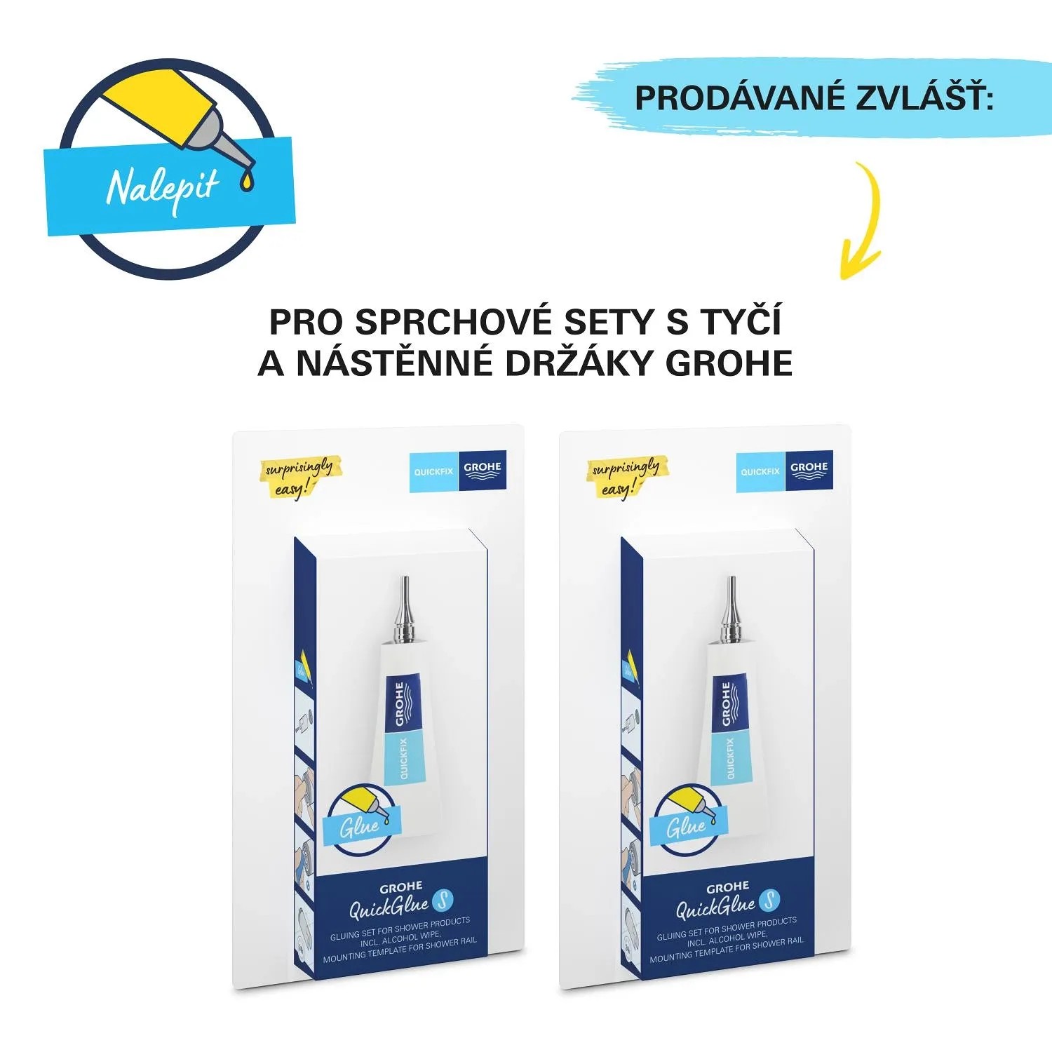 - Vhodné pro šroubování (šrouby a hmoždinky jsou v balení) nebo lepení (lepidlo GROHE QUICKGLUE S (41247000) se prodává samostatně - jsou zapotřebí 2)