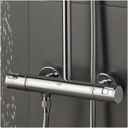 Technologie GROHE TurboStat je zárukou konstantní teploty vody bez otravných výkyvů, zatímco technologie GROHE DreamSpray zajišťuje vyvážený proud vody ze všech trysek. Přepínač GROHE AuqaDimmer umožňuje přepínat mezi ruční sprchou a hlavovou sprchou a také regulovat proudy vody zcela plynule, zatímco technologie GROHE DropStop zabraňuje odkapávání vody po konci sprchování.