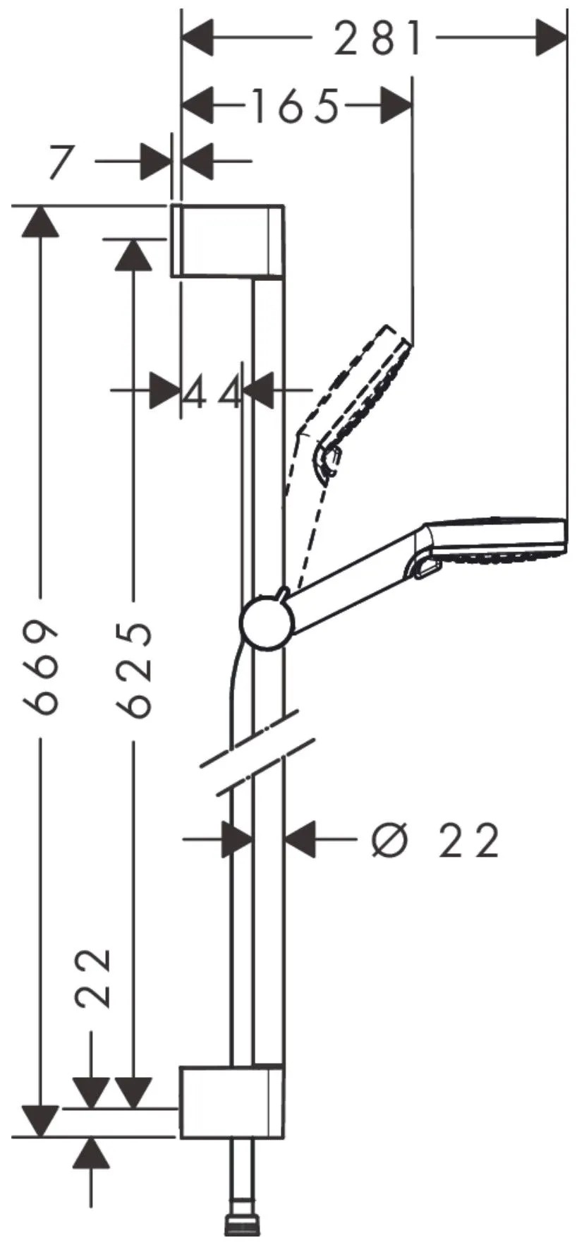 - úhel sklonu držáku sprchy plynule stavitelný o 45°