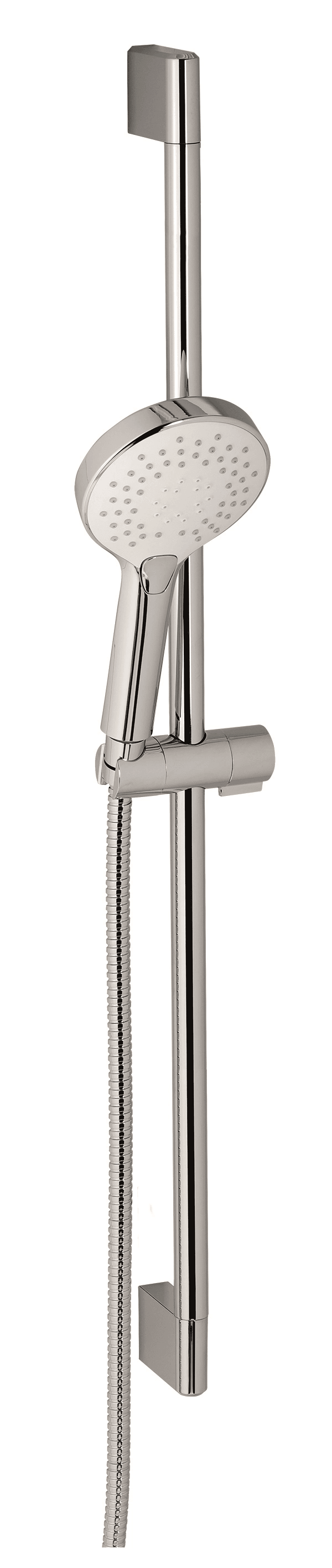 Sprchová souprava KIT200,0 obsahuje ruční sprchu se 3 typy proudu, posuvný držák sprchy s designovou sprchovou tyčí a velkým rozsahem nastavení výšky ruční sprchy a kovovou sprchovou hadici o délce 150 cm s ochranou proti překroucení (anti-twist). Délka tyče 780 mm. Rozteč montážních otvorů 750 mm.