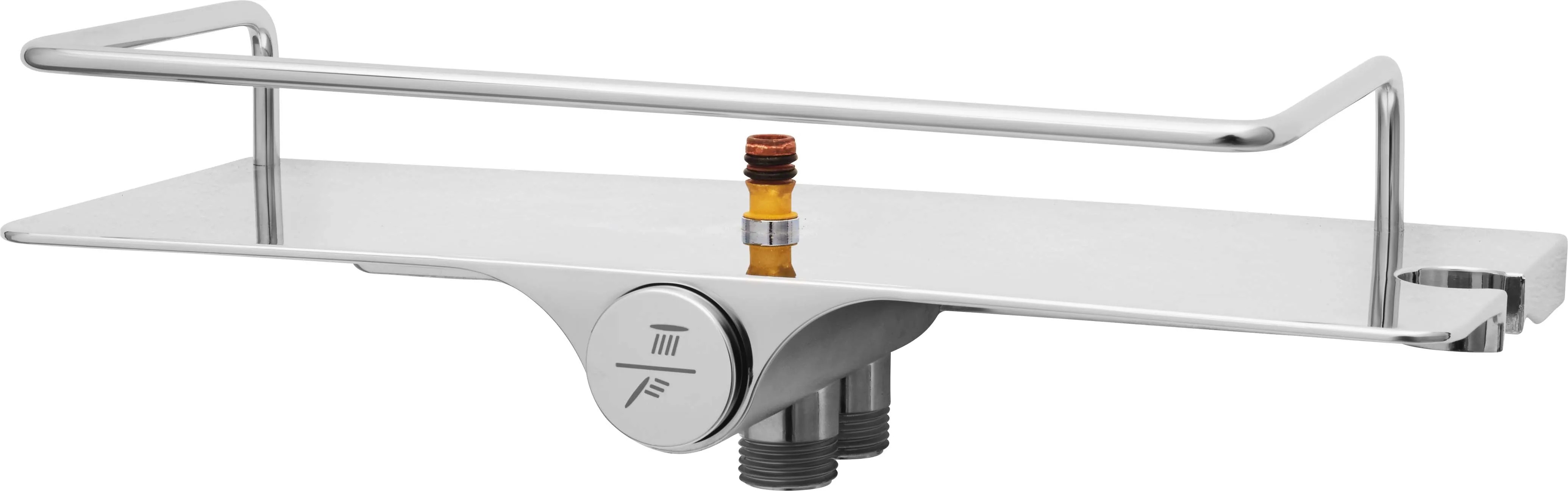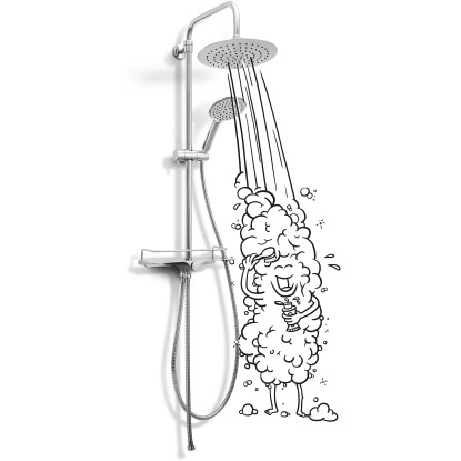 Celkově patří k této sadě obě sprchy, horní a ruční. Dále je zde odkládací polička a stoupací trubka, která vede až k horní sprše a na které je upevněna ruční sprcha, ta se dá výškově nastavit a otáčet. Sadu doplňují vhodná sprchová hadice a připojovací hadice. Stoupací trubka se dá vytáhnout z 76 cm na 116 cm a individuálně tak přizpůsobit vaší výšce a výšce ostatních členů rodiny. Stoupací trubka se rovněž montuje pomocí dodávaného montážního materiálu. Součásti sady jsou vyrobeny ze stabilního ABS s kvalitním chromováním.