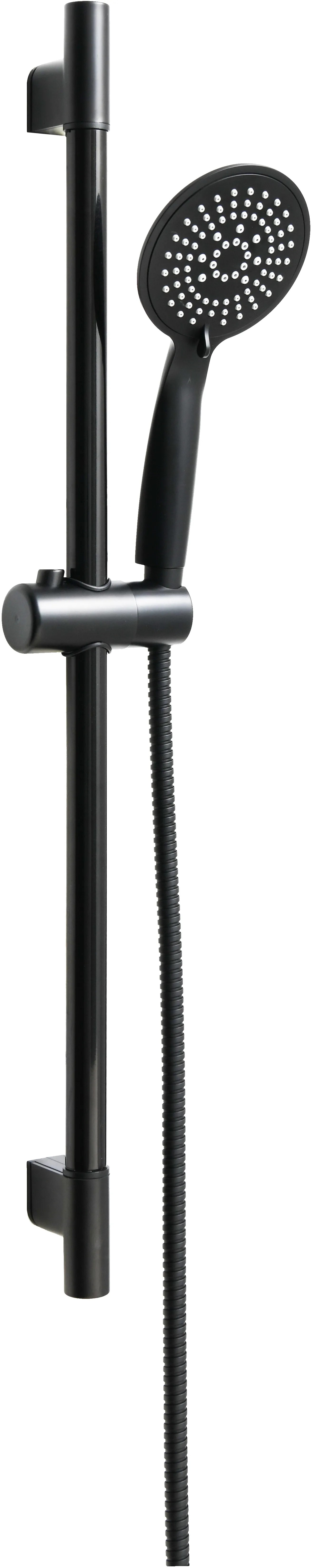 Elegantní sprchový set značky Sanotechnik v černé barvě se skládá ze sprchové hadice s ruční sprchou a sprchové tyče. Moderní design upoutá pozornost v každé koupelně.