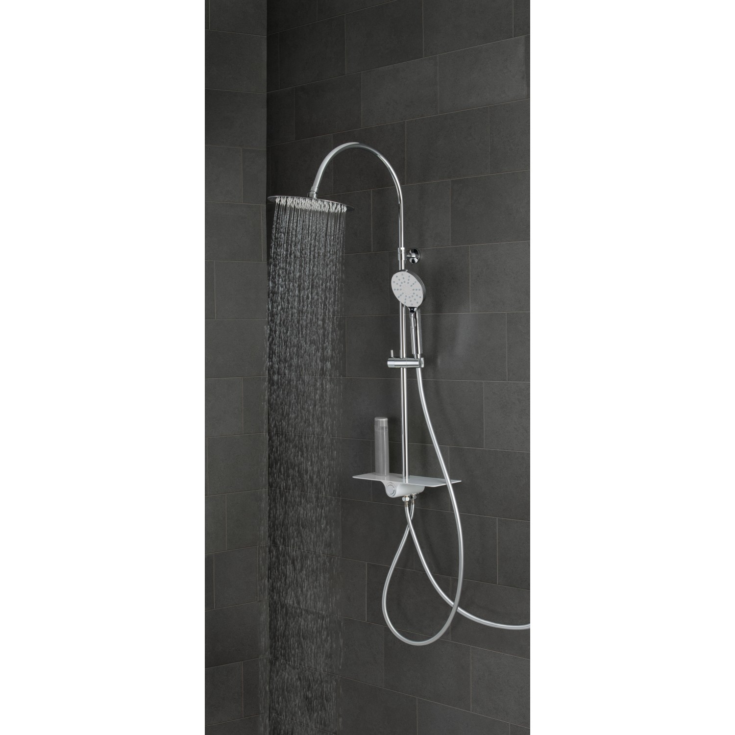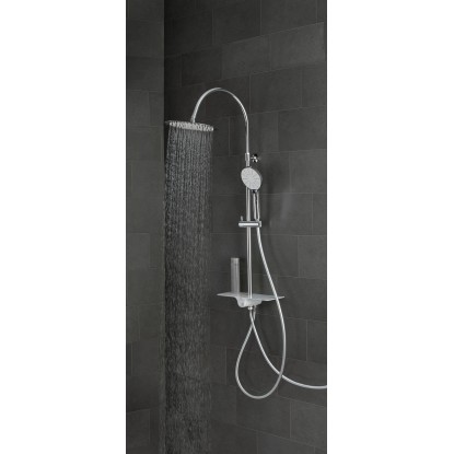 Výškově nastavitelná sada hlavové sprchy Aquastar značky Schütte vytvoří ve vaší koupelně vlastní wellness oázu. Po stresujícím dni relaxujte dlouhou a vydatnou sprchou. Díky velkoplošné, ploché hlavové sprše a designové ruční sprše se 3 typy proudu vody nestojí nic v cestě příjemnému zážitku při sprchování. Na praktické poličce máte místo na vaše hygienické potřeby. To je skvělé obzvláště do malých sprch. Pomocí přepínacího tlačítka v přihrádce pohodlně přepnete mezi ruční a hlavovou sprchou. Pro rychlé a snadné čištění je ruční i hlavová sprcha opatřena nopky proti usazování vodního kamene. Vápenaté usazeniny zde nemají žádnou šanci a lze je jednoduše odstranit prsty. Přiložené těsnění pro úsporu vody umožňuje úsporu vody až 50 %. Sprchová hadice a plastová připojovací hadice jsou dvojitě vinuté a mají standardní přípojku G 1/2. Přísná kontrola kvality a vysoce kvalitní materiály zaručují vysokou bezpečnost a nejlepší kvalitu vody.