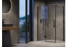Pevná stěna Cool! v černém provedení a s výplní z čirého skla s ochrannou vrstvou Ravak AntiCalc. Otočitelný výrobek pro levou i pravou variantu.
