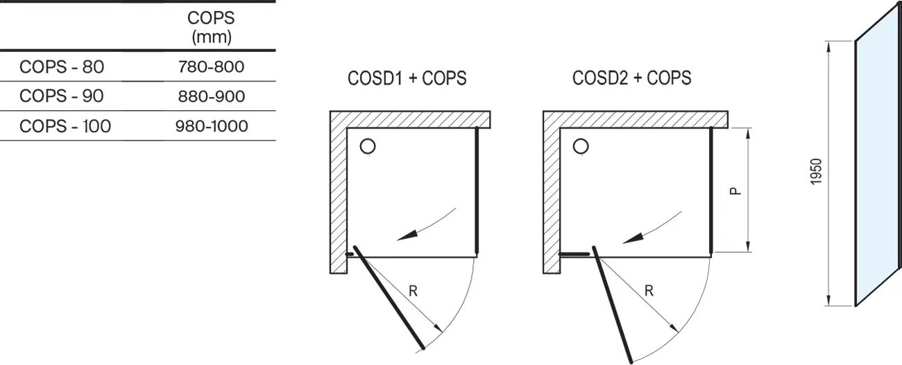 Otočením výrobku o 180° získáte levou nebo pravou variantu. Montuje se do obloženého rohu koupelny a to v kombinaci s výrobkem COSD1, nebo COSD2 na vaničky Ravak Angela, Perseus Pro, Perseus Pro Flat, Perseus Pro Chrome, Gigant Pro, Gigant Pro Flat, Gigant Pro Chrome nebo přímo na podlahu se zabudovaným odtokovým žlabem či podlahovou vpustí.