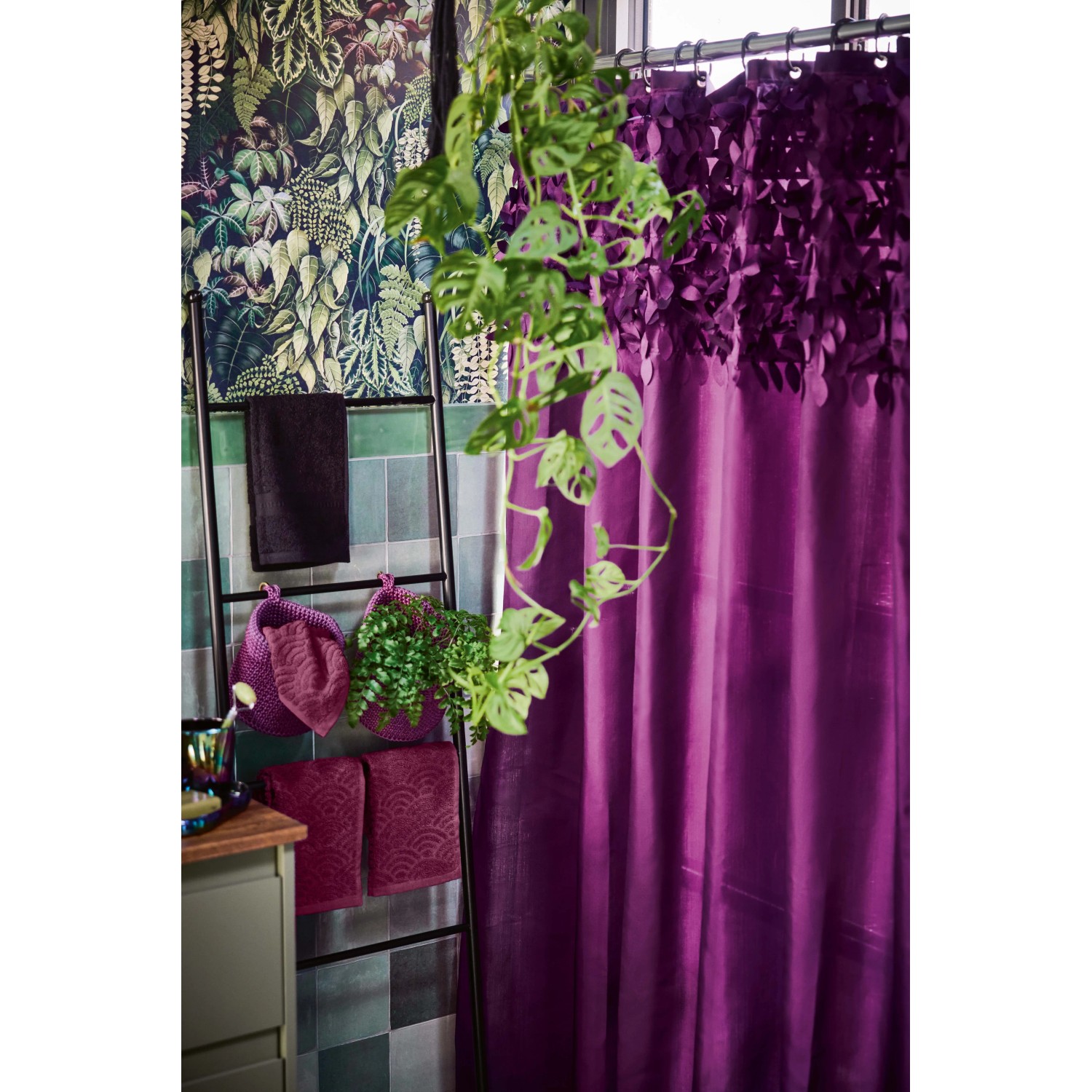 Díky módnímu designu ve fialové barvě zkrášlí sprchový závěs vanu na první pohled. Pozornost navíc upoutají krásné aplikace, které jsou nahoře. Závěs lze kombinovat s nejrůznějšími koupelnovými koncepty - od nadčasového až po elegantní. Koupelnový doplněk je vyroben z polyesteru, zaujme vysokou odolností a kvalitou a snadno se udržuje. Závěs se snadno čistí. Sprchový závěs má rozměry 180 x 180 cm (V x Š).