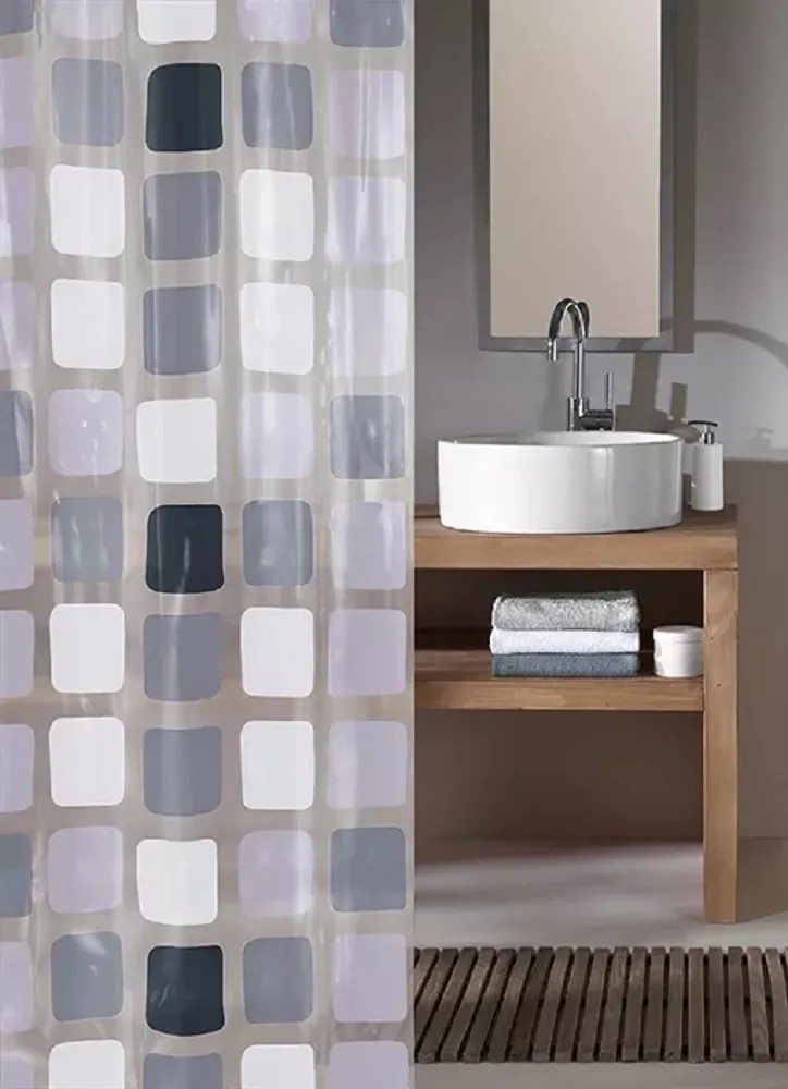 Kleine Wolke Sonny elegantní sprchové závěsy dodají Vaší koupelně moderní nádech. Jsou nejen funkční, ale i vizuálně poutavé. Závěsy se vyznačují atraktivním designem čtverců uspořádaných v pravidelných řadách a jsou vyrobeny ze 100% PEVA, ekoplastu bez PVC, a zaručují absolutní vodotěsnost a šetrnost k životnímu prostředí. Zesílený perforovaný proužek s očky zajišťuje snadnou manipulaci a odolnost. Závěsy jsou také certifikovány dle normy Oeko-Tex Standard 100, což zaručuje nepřítomnost škodlivých látek.
