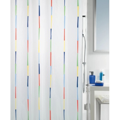Design vícebarevných proužků přináší do koupelny mladistvé osvěžení a optimismus. Velmi kvalitně zpracovaná, na údržbu nenáročná textilní tkanina se zesíleným švem pro kroužky a zatíženým dolním okrajem.