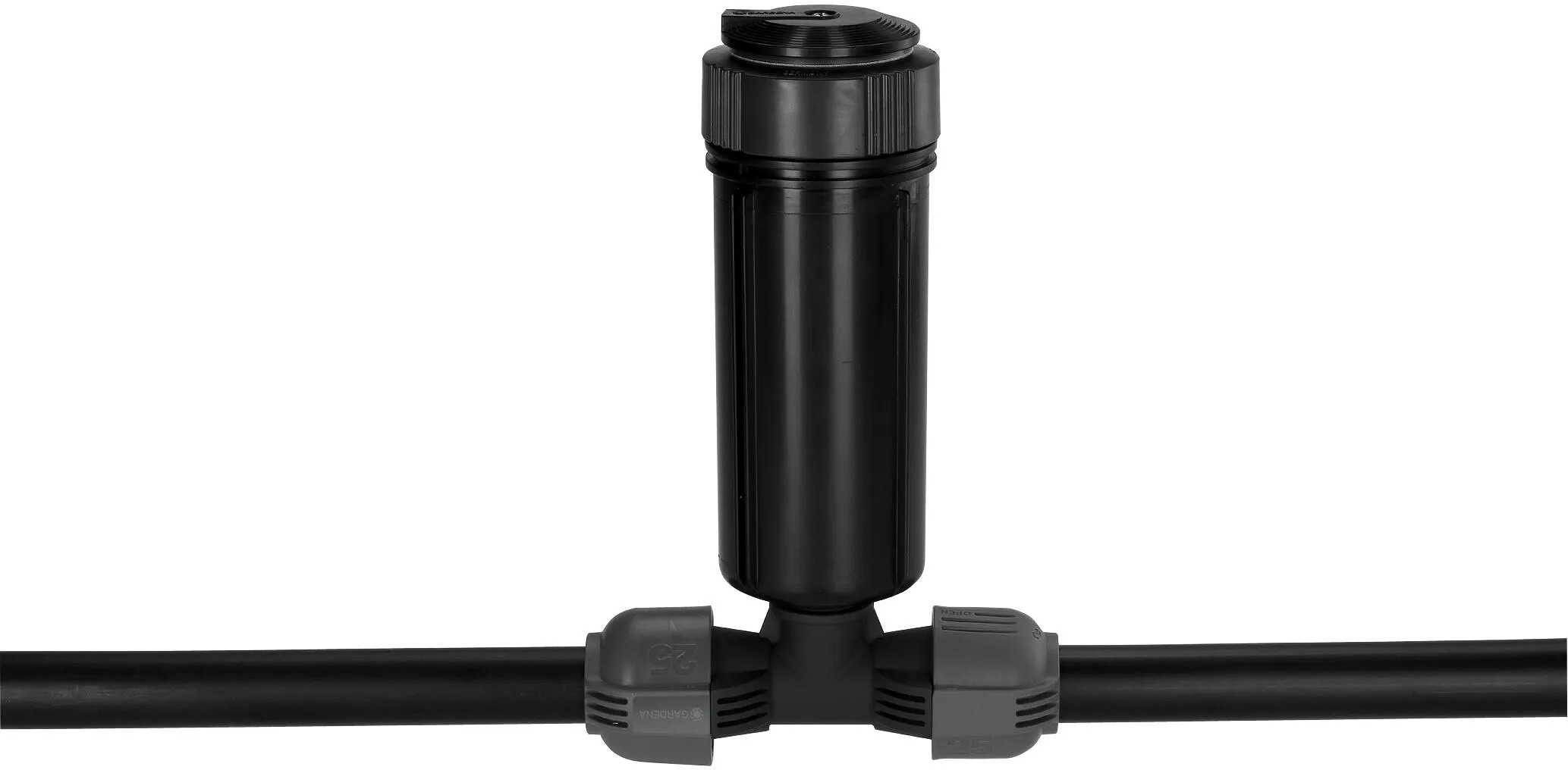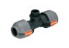 Gardena T-kus 25 mm (1") x 19 mm (3/4") s vnějším závitem slouží - jako součást Gardena sprinklerového systému - k připojení turbínového výsuvného zadešťovače T 380 a výsuvného čtyřhranného zadešťovače R 140 do potrubí.