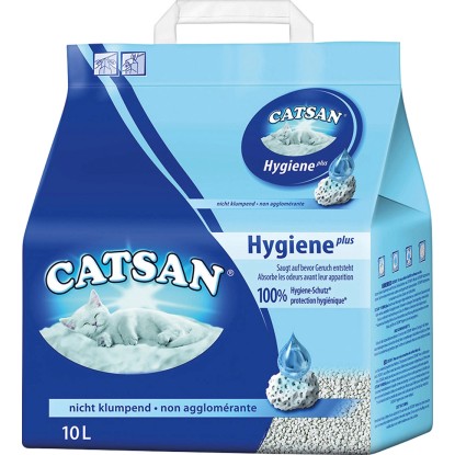 Catsan Hygiene plus stelivo se skládá z unikátních minerálních granulí, vyrobených z nejjemnějšího přírodního křemičitého písku a nejčistšího vápna a obsahujících vysoce účinné minerály. Jejich jemný pórovitý povrch absorbuje vlhkost nesmírně rychle jako houba a bezpečně ji v sobě uzavře. Unikátní přírodní minerální složení zabraňuje třikrát účinněji vzniku pachu než kterékoli jiné běžné stelivo pro kočky. Obsahuje nízké procento prachu, je neparfémované a neobsahuje žádné umělé přísady.