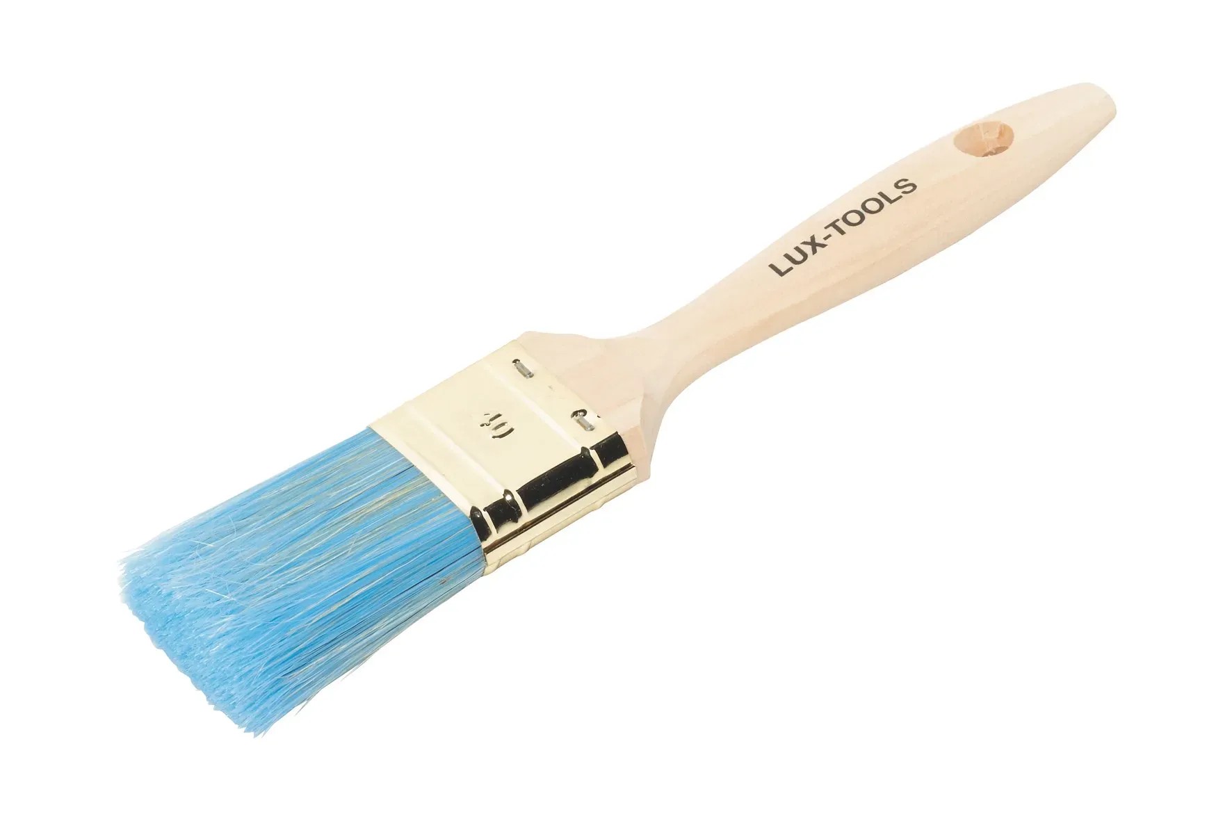 LUX-TOOLS plochý štětec Universal ***** zajistí díky své vysoké kvalitě velmi dobré výsledné nátěry a je ideální pro nanášení vodou ředitelných laků. Štětec o šířce 40 mm má velmi kvalitní směs světlých přírodních a modrých syntetických štětin, pomosazenou zděř a ergonomickou rukojeť z březového dřeva s otvorem k zavěšení.