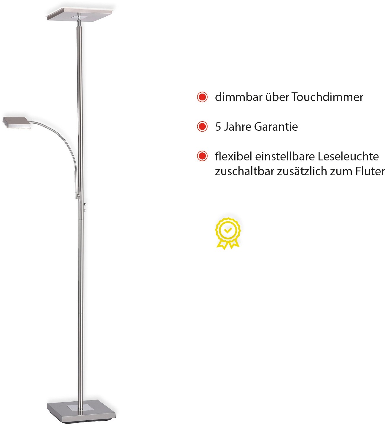 Just Light. Stojací LED lampa Hans se čtecím ramenem, 22+4W, ocelová, 190 cm