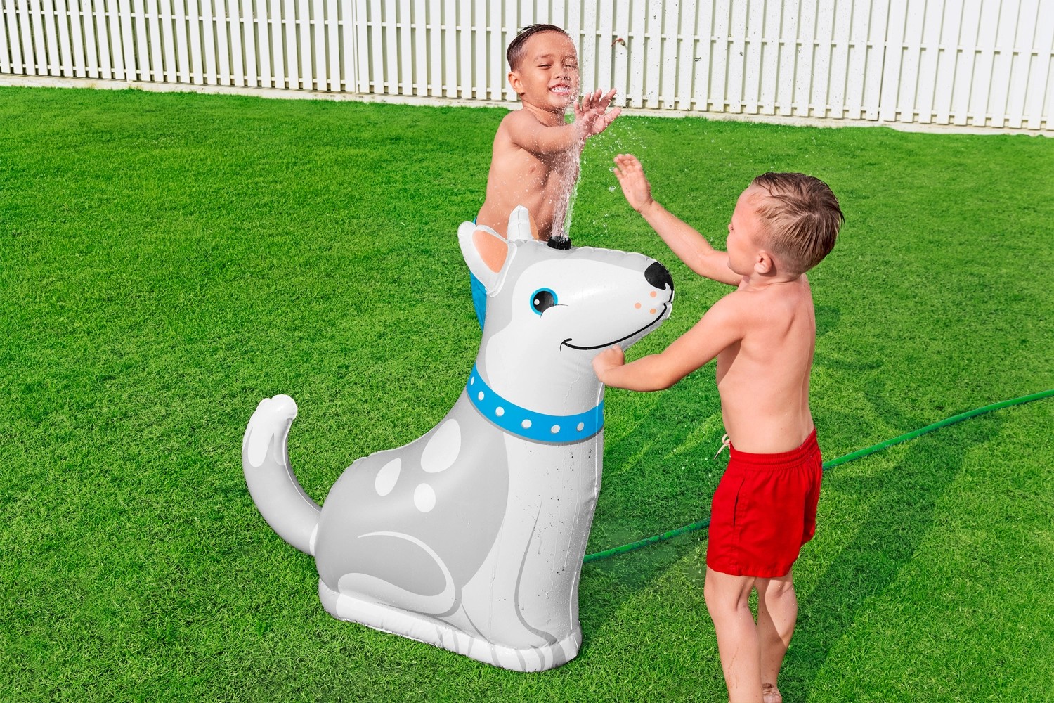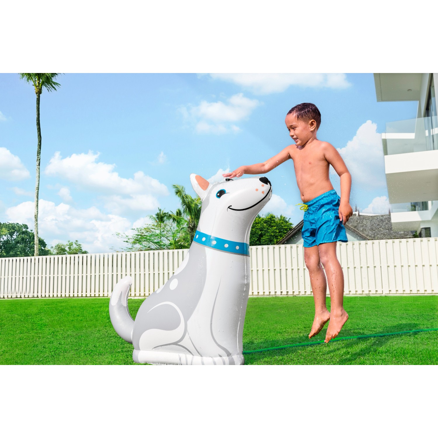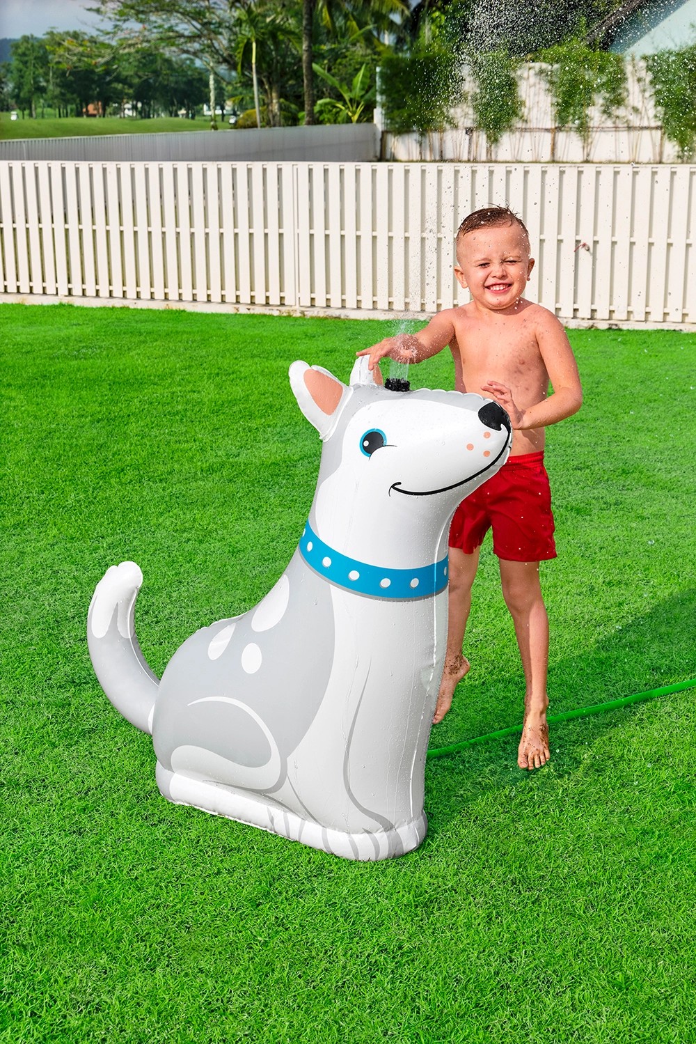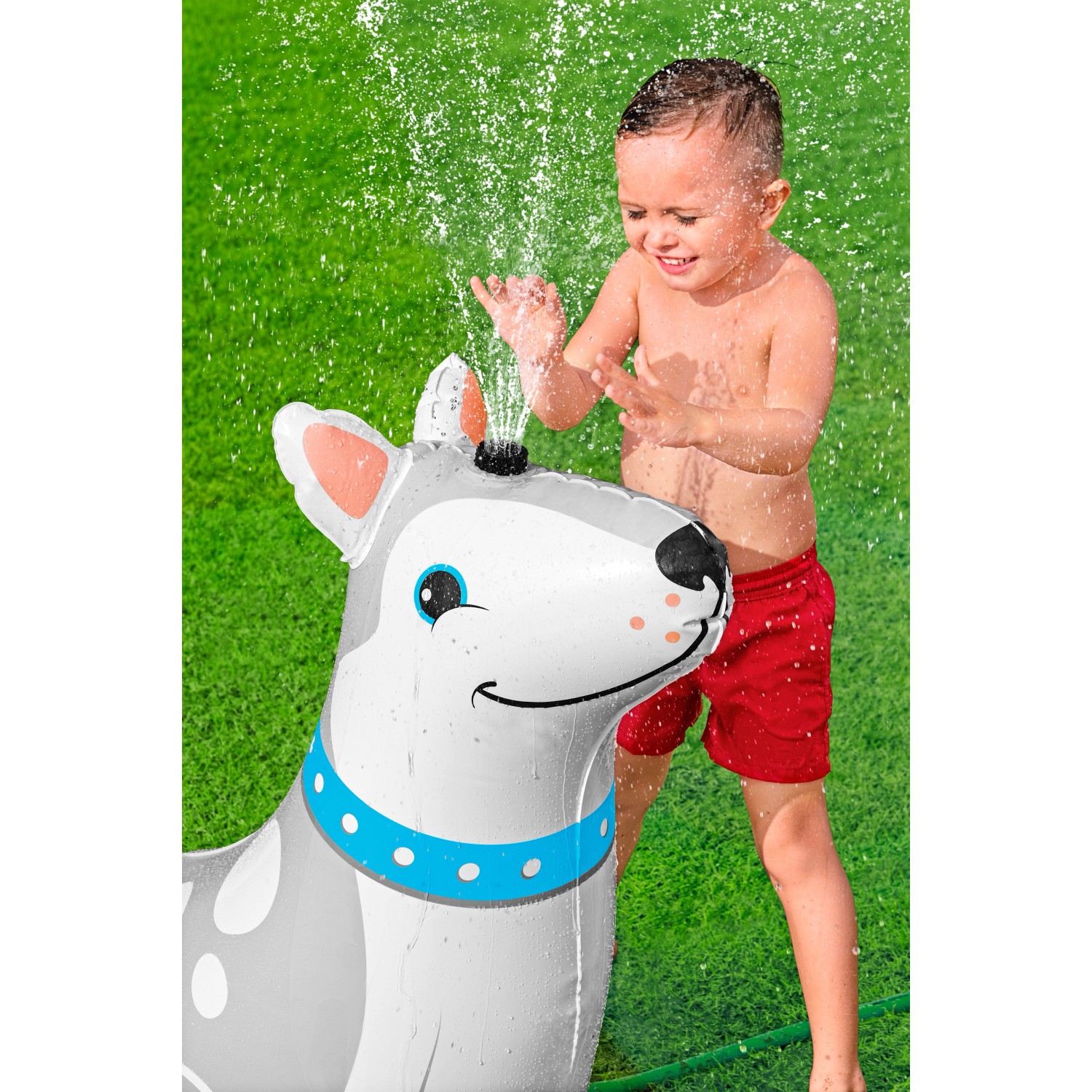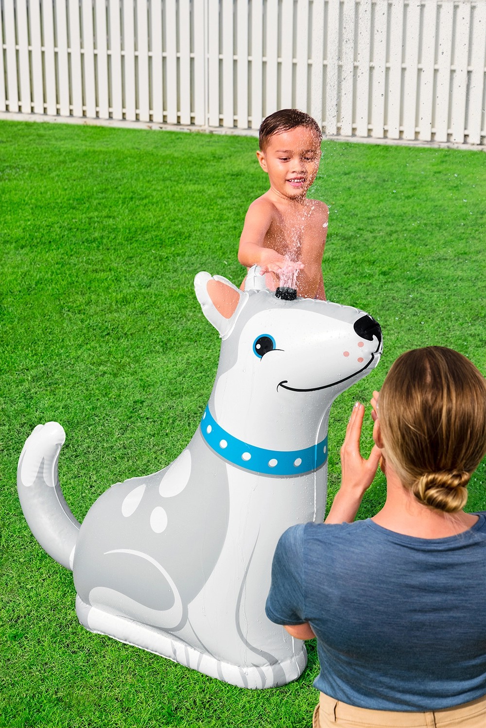 Vodní postřikovač Bestway Happy Husky je ideální pro děti od 2 let. Jednoduše nafoukněte zavlažovač, naplňte vnitřní vodní komoru a připojte zavlažovač k zahradní hadici. Integrovaná vodní komora poskytuje sprinkleru potřebnou stabilitu. Nabízí také možnost postřikovače MultiSpray na hlavě huskyho má 6 různých typů sprejů, ze kterých si vaše dítě může libovolně vybrat.