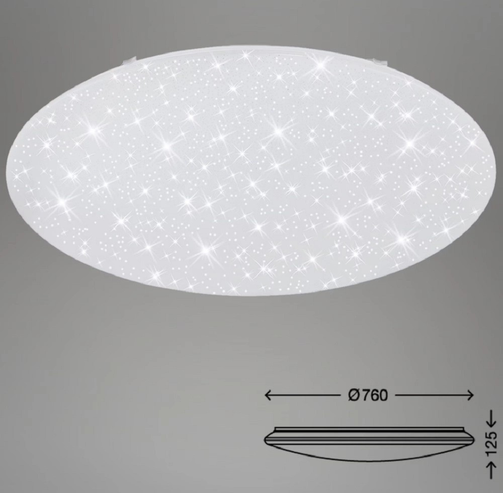 Toto svítidlo Briloner s efektem hvězdného nebe je díky svému jednoduchému designu vhodné pro širokou škálu aplikací. Toto svítidlo má nastavitelnou teplotu chromatičnosti 3000-6000 K, od teplé bílé až po studenou bílou, je stmívatelné, disponuje funkcí nočního světla, efektem hvězdného nebe a časovačem. Svítidlo je ovladatelné pomocí přiloženého dálkového ovladače.