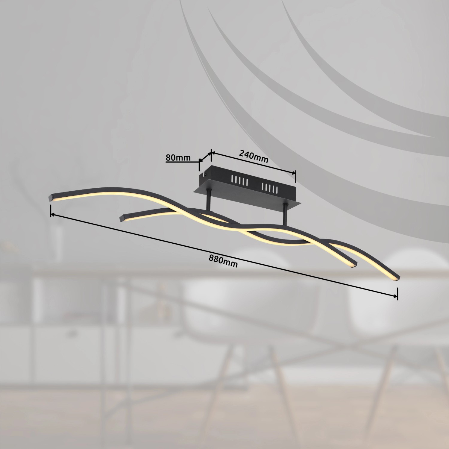 Moderní stropní svítidlo ze série Marius skvěle doplní váš interiér. Zakřivená ramena s integrovaným LED světlem, připevněná ke dvěma tyčím běží paralelně vedle sebe a vydávají příjemně teplé bílé světlo (3 000 Kelvinů).