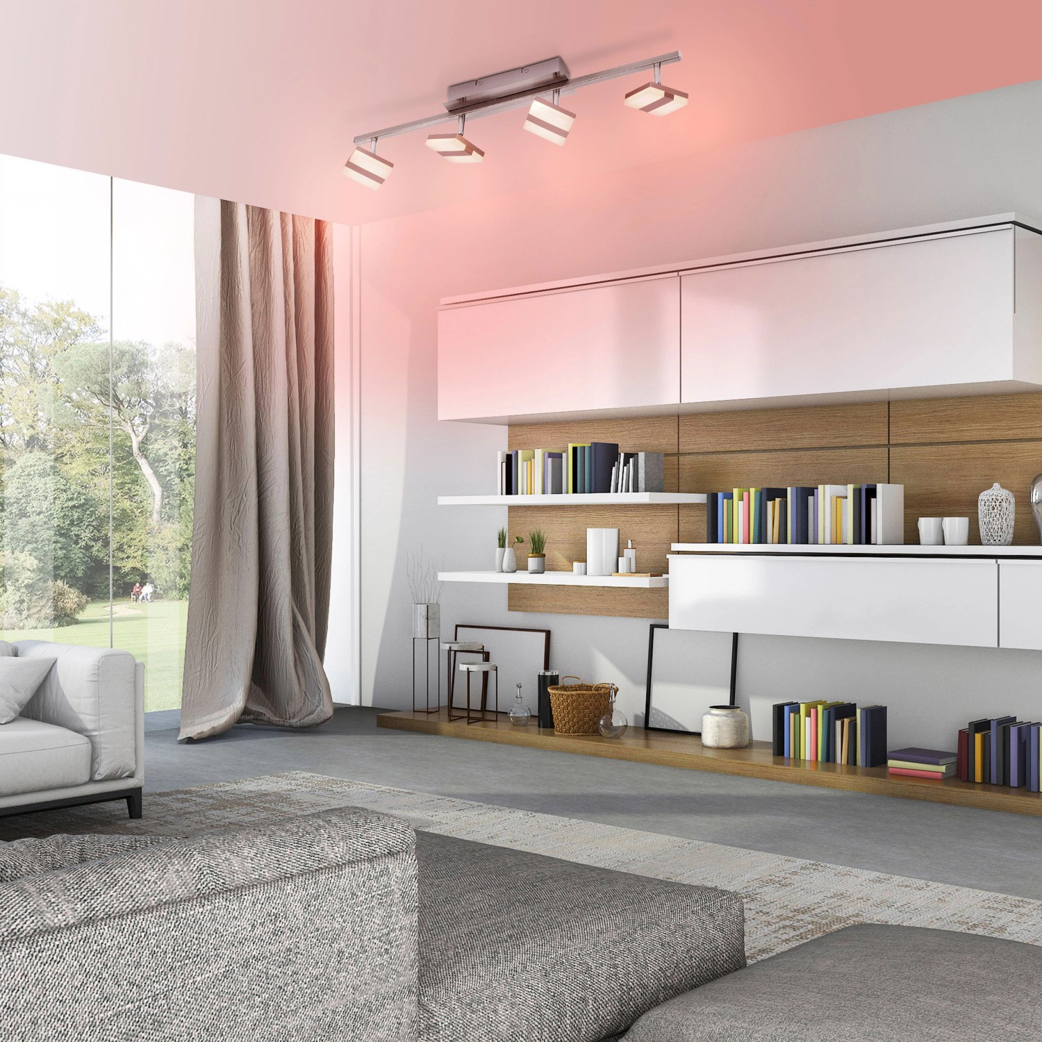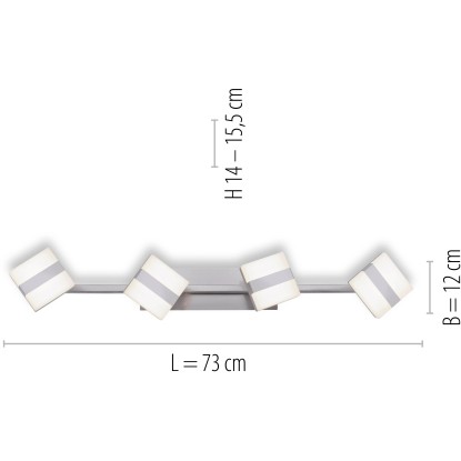 Stropní svítidlo Just Light. Sabi z řady chytrých svítidel Lola Smart upoutá decentním moderním vzhledem. Díky jednoduchému vzhledu a mnoha funkcím najde svítidlo své místo v mnoha místnostech, jako jsou kuchyně, chodby, obývací pokoje a ložnice. Stříbrný kryt svítidla je ze železa a díky čtyřem bílým bodovým světlům se stínidly z plastu poskytuje svítidlo příjemné světlo. Čtyřbodové reflektorové svítidlo je vybaveno pevně zabudovanými LED žárovkami s bílým světlem a RGB barvami. Teplotu chromatičnosti bílého světla můžete nastavit od teplé bílé barvy (2 700 K) až po denní bílou (5 000 K) a regulovat můžete také intenzitu světla. Bodová světla tohoto svítidla můžete libovolně nasměrovat a jednotlivá místa v obytném prostoru cíleně nasvítit.