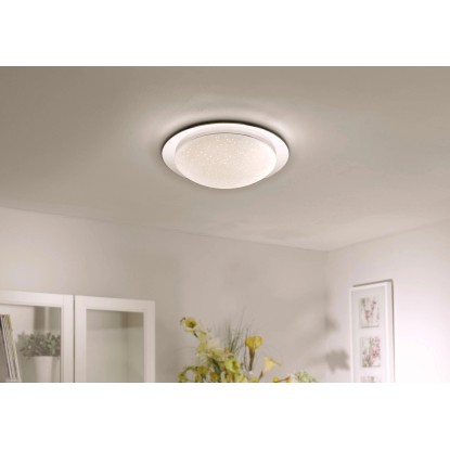 Svítidlo je dodáváno včetně pevně zabudovaného LED světelného zdroje s příkonem 11 W. Žárovka má světelný tok cca 1 200 lm a opakovaným stisknutím světelného spínače umožňuje nastavení barevné teploty světla ve třech stupních na 3 000, 4 500 a 6 000 K. Díky tomu dokáže bílé stropní svítidlo simulovat všechny odstíny přirozeného světla v průběhu dne. Svítidlo má stupeň krytí IP44 a můžete jej tedy použít i v koupelně.