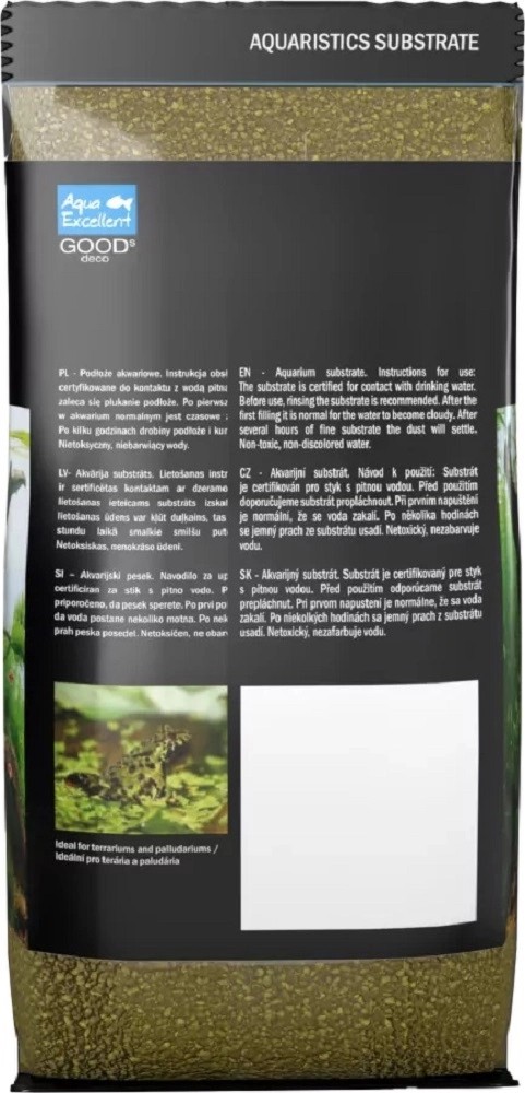 Barevné písky a drtě Aqua Excellent. Atraktivní a pevné balení písků a drtí minimalizují protrhnutí obalu. Písky a drtě jsou již proprané, před použitím je však doporučeno propláchnout. Použití vhodné pro akvária a bettária. Substrát je certifikován pro použití s pitnou vodou. Před použitím doporučujeme substrát propláchnout. Při prvním napuštění je normální, že se voda zakalí. Po několika hodinách se jemný prach ze substrátu usadí. Netoxický, nezabarvuje vodu.