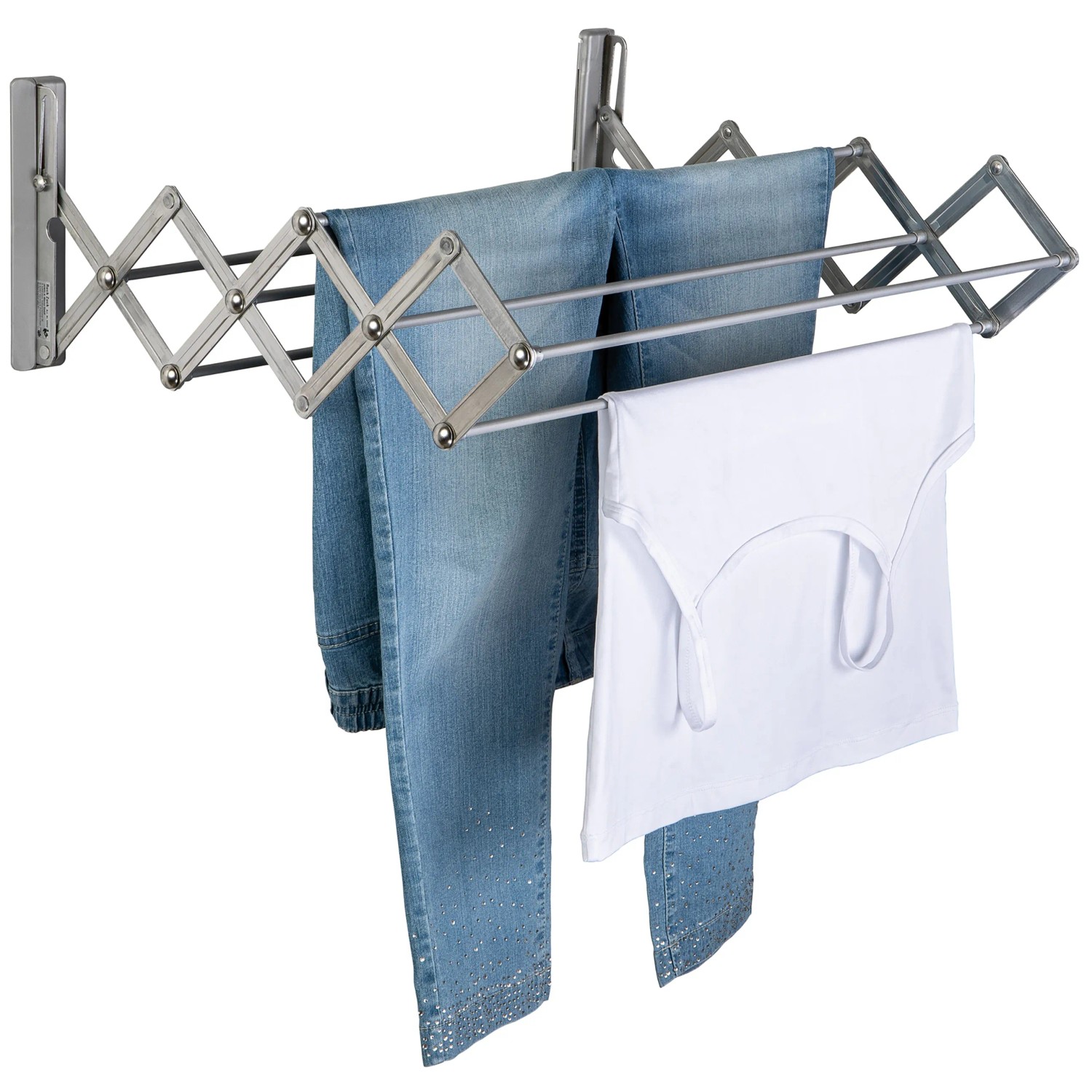 Sušák na prádlo Juwel Ruck Zuck je vyrobený z plastem potažených ocelových tyčí a hliníkových bočních panelů. Sušák je určen k vnitřnímu i venkovnímu použití a velice odolný vůči povětrnostním vlivům. V případě, že sušák nepoužíváte, stačí jej sklopit a uspoříte tak potřebné místo.