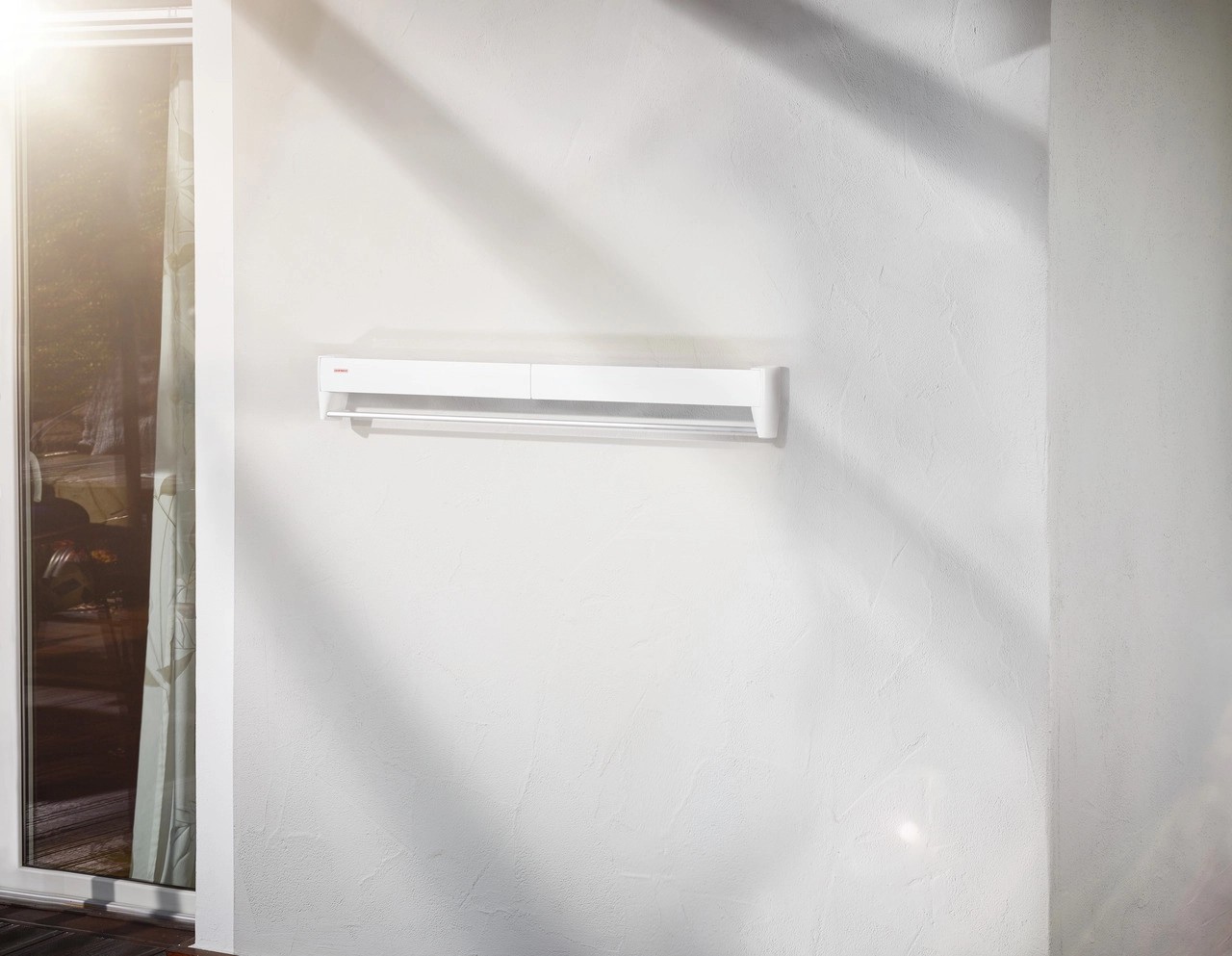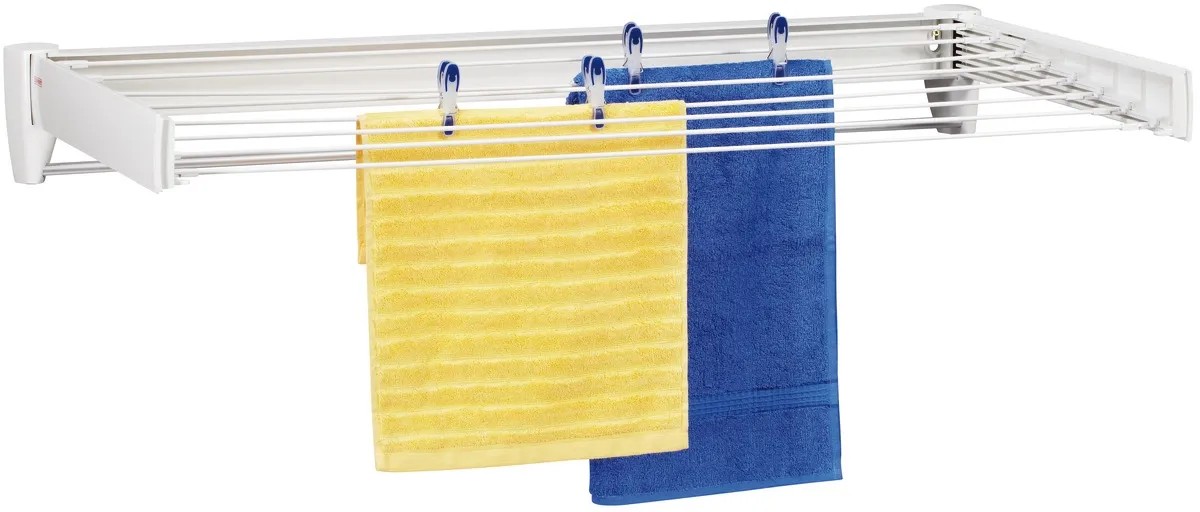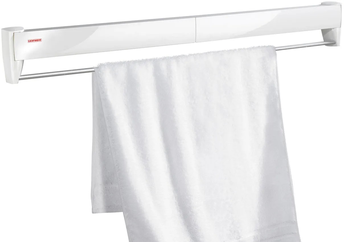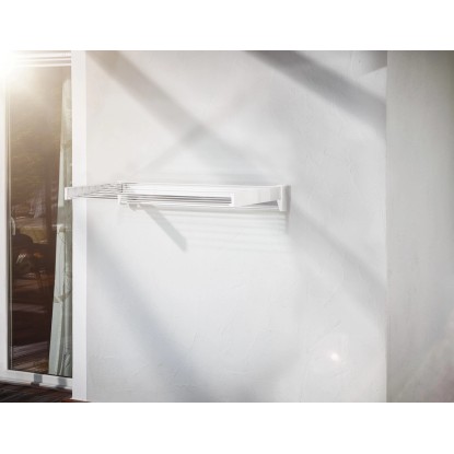 Rozkládací nástěnný sušák Leifheit Telegant 81 Protect Plus umístíte všude tam, kde není téměř žádný prostor pro velký stojanový sušák. Pomocí dodávaného upevňovacího materiálu jednoduše přimontujete sušák na stěnu. Ve složeném stavu zaujme nadčasovým vzhledem a integrovaným chromovaným držákem na ručníky. Po rozložení naleznete osm sušících tyčí, každá o délce 90 cm. Ty nabízejí kapacitu sušení pro celou jednu náplň pračky. Nástěnný sušák má vysokou nosnost a tak na něm vysušíte i těžké mokré ručníky po sprchování.