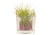 Moderní aranžmá tillandsií ve čtvercové skleněné nádobě se ideálně hodí jako dekorace do Vaší koupelny. Tillandsie mají rády vysokou vzdušnou vlhkost a světlé teplé stanoviště. Žijí z vysoké vzdušné vlhkosti, protože jejich šupinaté listy mají schopnost absorbovat vodu. Tillandsie každé 2 - 3 dny postřikujte dešťovou vodou.