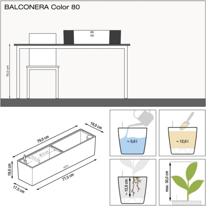 Balkonový truhlík Lechuza Balconera Color zaujme decentními matnými barvami. Díky integrovanému zavlažovacímu systému jsou vaše rostliny optimálně zásobovány vláhou po celý den. Balconera Color se vyznačuje plastem odolným vůči povětrnostním vlivům a snadno se přepravuje.