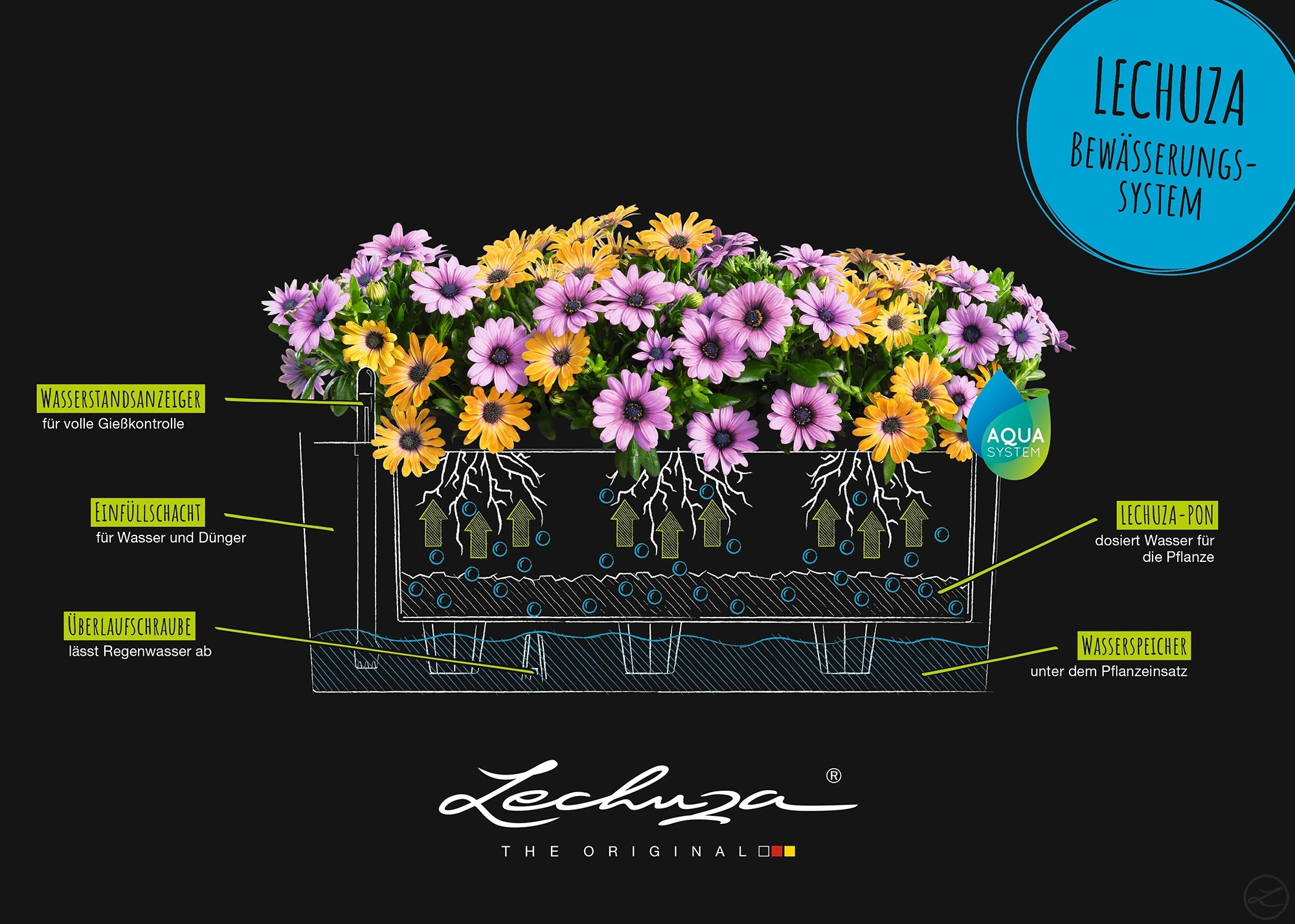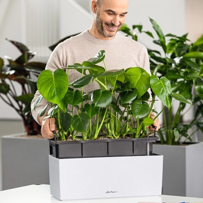 Je jedno zda jste pryč několik dní nebo přes den prostě nemáte čas na náročnou péči o rostliny. Květináče Lechuza zastanou práci za vás. Vaše rostliny jsou zabezpečeny na 2-12 týdnů, podle velikosti zásobníku a to zásobou vody i výživných látek, které potřebují k ideálnímu růstu. S doplněným zásobníkem se rostlina postará sama o sebe bez vašeho zásahu. Kdy je potřeba zásobník opět doplnit vodou a případně tekutým hnojivem, vám spolehlivě ukáže zabudovaná měrka stavu vody.