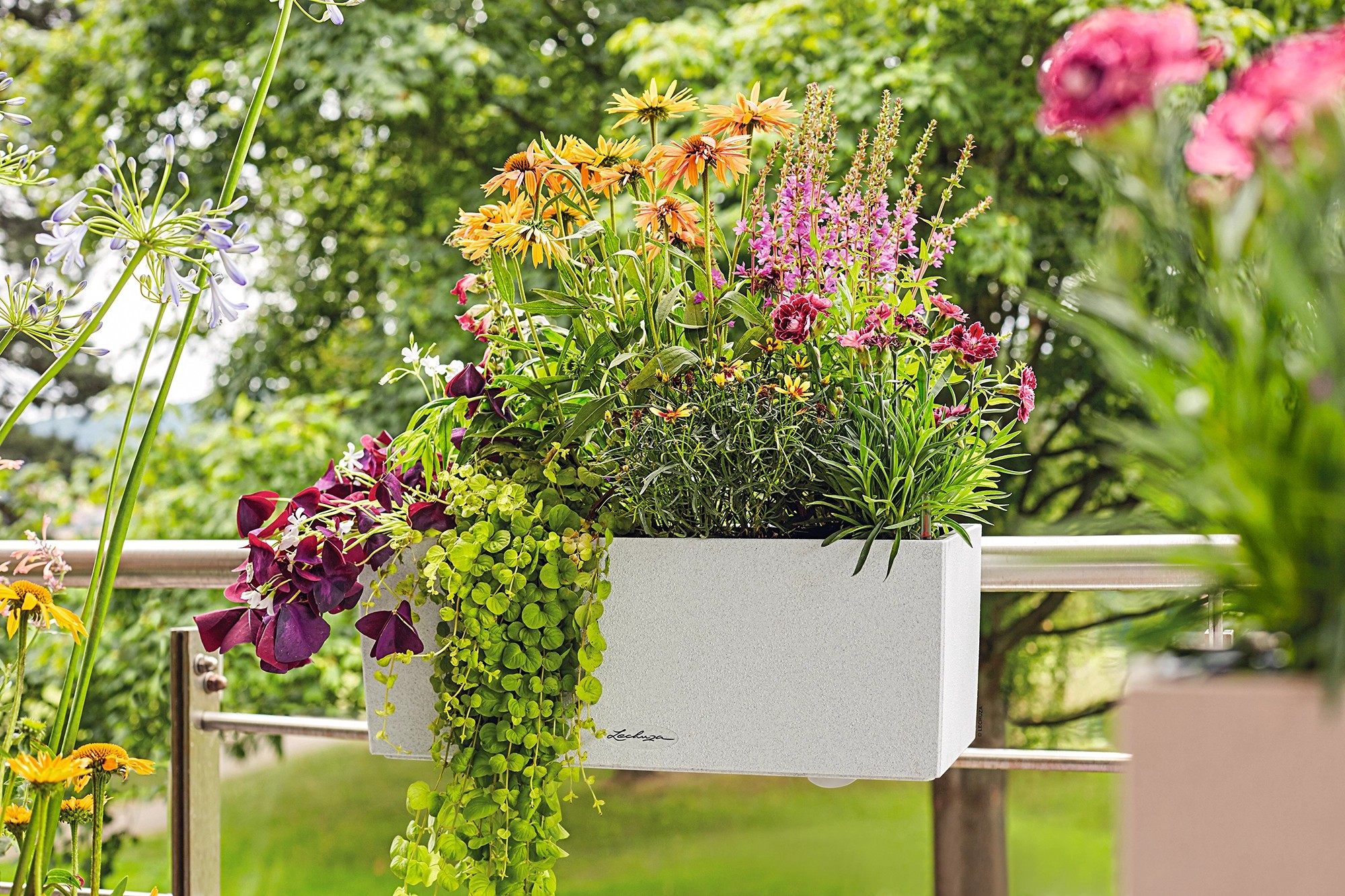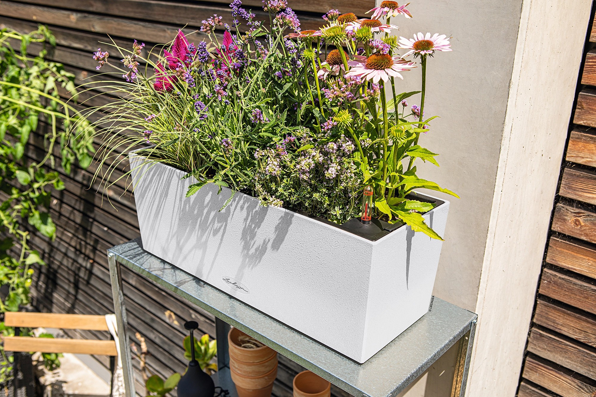 Truhlíky Lechuza Balconera Stone jsou připraveny kdykoli podpořit vaše tvůrčí nápady, všude tam, kde zapadnou svým vzorem. Jsou k dispozici také truhlíky Balconera Color či Balconera Cottage. V kombinaci s držáky je možné truhlíky umístit prakticky na jakékoli zábradlí. Balconera jsou truhlíky, které vydrží po celý rok. Po odkvětu letních květů umístěte do truhlíku kvetoucí směs podzimních vřesů a stále zelený břečťan. V zimě pak můžete do truhlíku vložit nastříhané chvojí z jehličnatých keřů. Vydrží do doby, kdy se na jaře do truhlíků mohou opět zasadit první rozkvetlé macešky nebo malé cibuloviny.