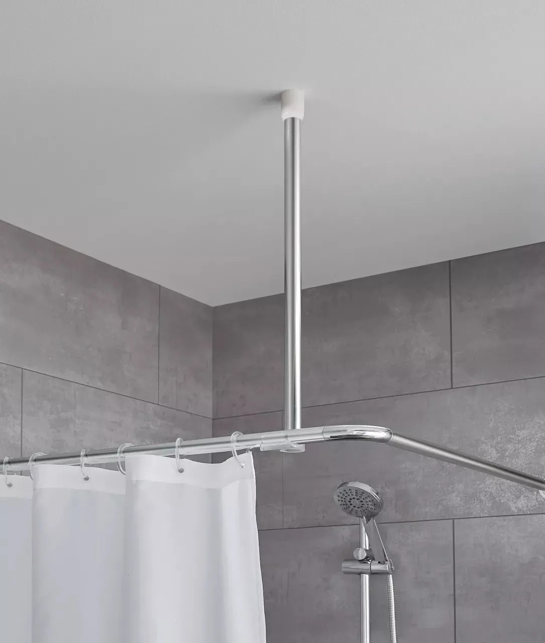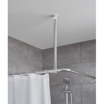 Vysoce kvalitní stropní držák od Kleine Wolke se snadno instaluje, je odolný vůči poškrábání a má dlouhou životnost. Poskytuje optimální stabilitu pro vaše sprchové tyče (kouty) s průměrem 25 mm. Díky inteligentnímu systému lze kroužky sprchového závěsu protáhnout. Tyč lze snadno zkrátit zaříznutím. To vám umožní přizpůsobit držák vaší koupelně.