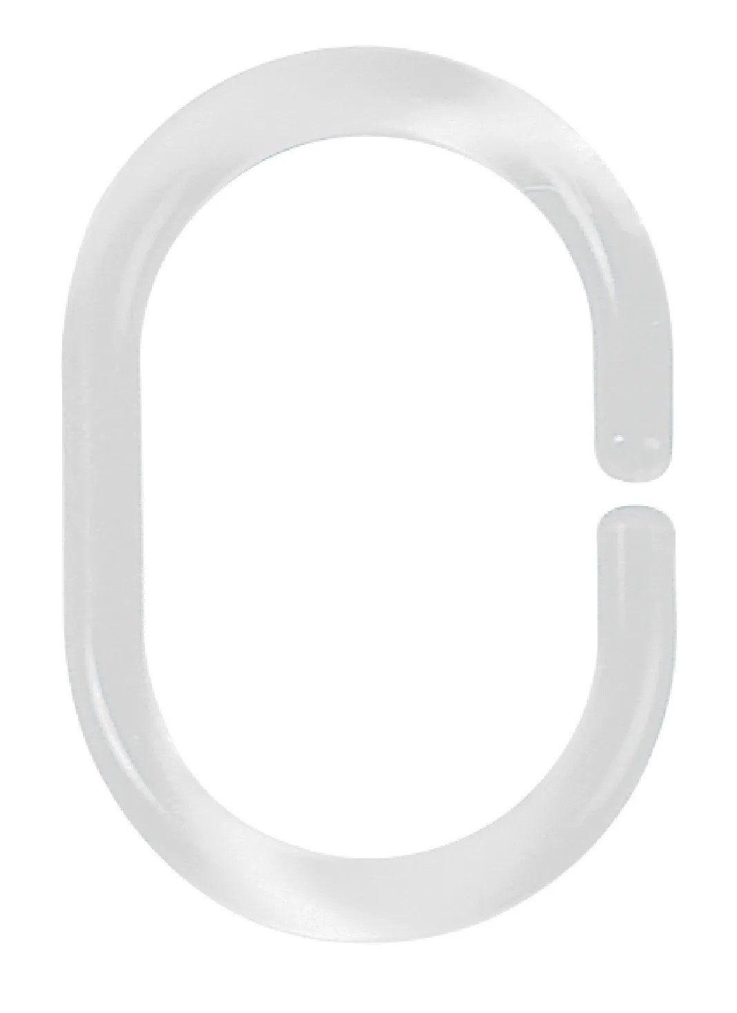 Univerzální kroužek ke sprchovému závěsu z plastu. Rafinovaný otvor tvaru C usnadňuje upevnění sprchového závěsu.