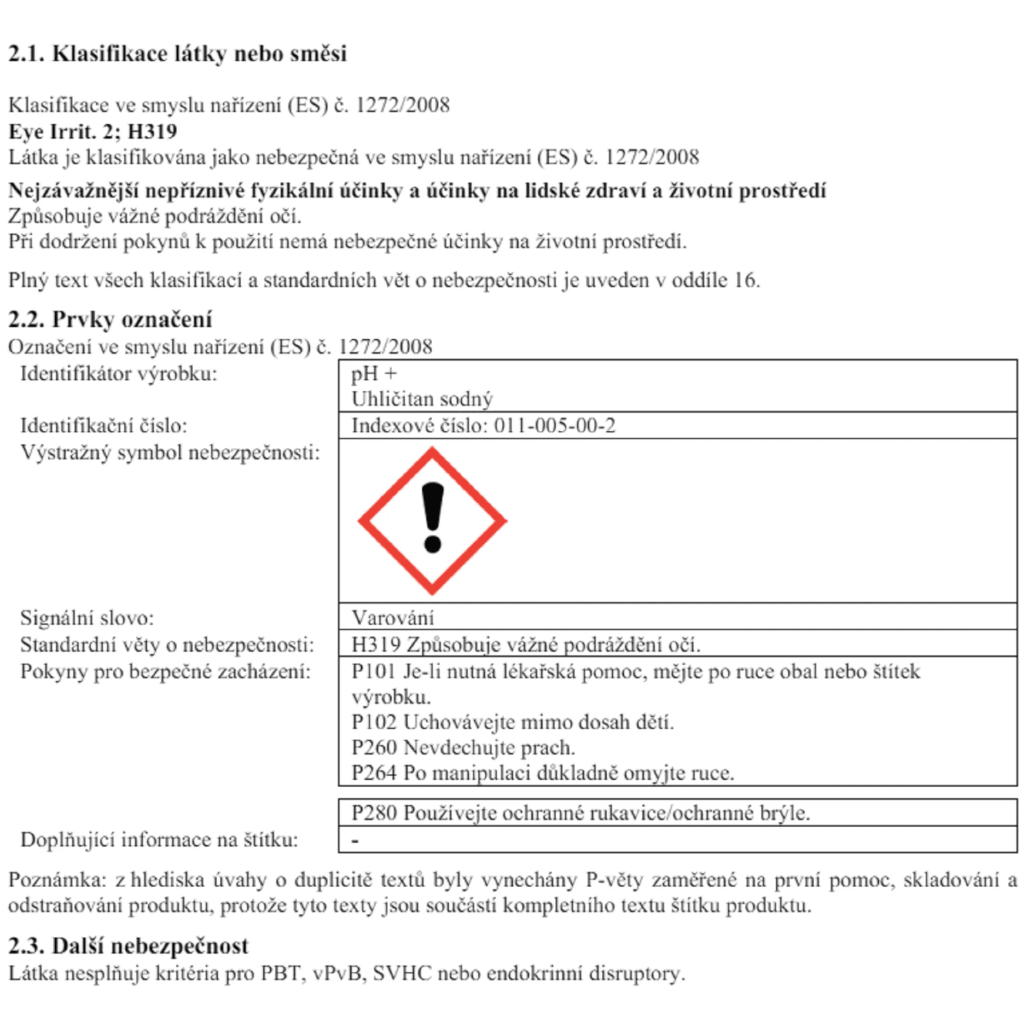 Jemný prášek bílé barvy. Obsahuje uhličitan sodný (100 %), indexové číslo: 011-005-00-2.