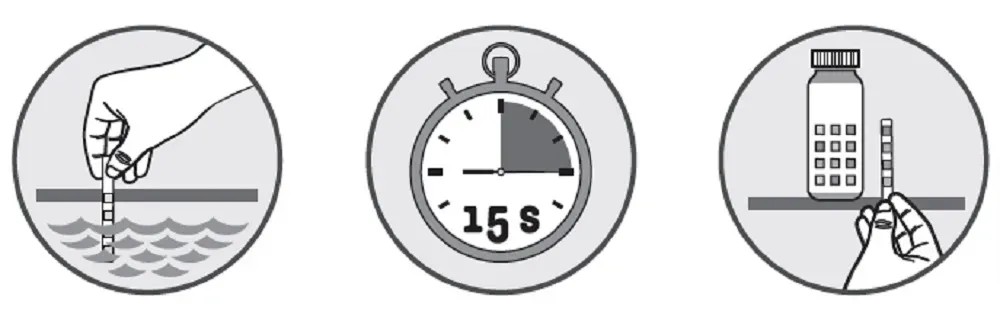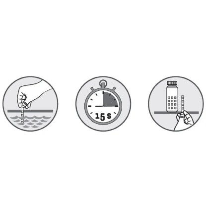 Během třech jednoduchých kroků zjistíte hodnoty koncentrace bazénové chemie, a to již během patnácti vteřin. Pro ověření naměřených hodnot doporučujeme i nadále jednou za 14 dní použít také kapkový tester.