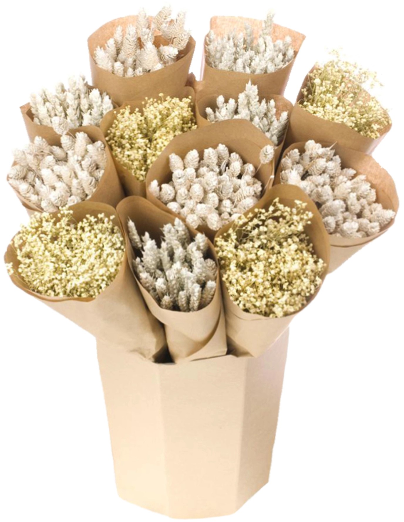 Chcete-li domovu dodat veselý vzhled, kytice sušených květin v pastelové barvě bude správnou volbou. Naleznete zde zajímavý výběr sušených a pastelově žlutých a bíle zbarvených přírodních materiálů. S těmito působivými prvky vytvoříte vždy pěkný design, který vám bude dlouho dělat radost. Ideální v každém ročním období a pro jakoukoli příležitost. Popusťte uzdu své kreativitě.